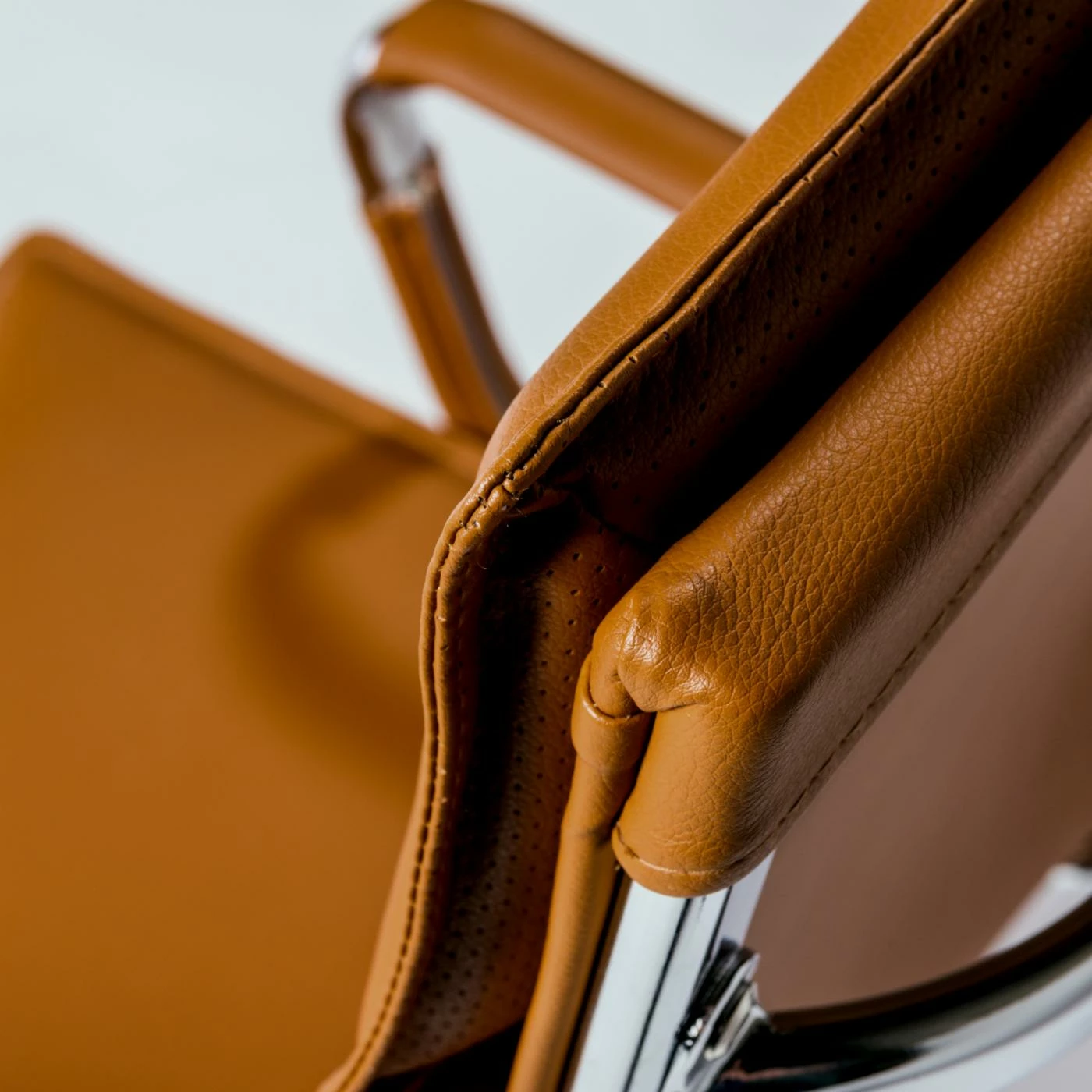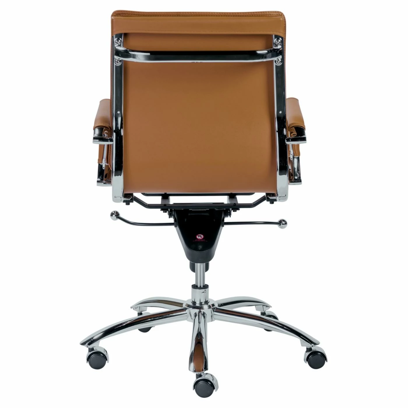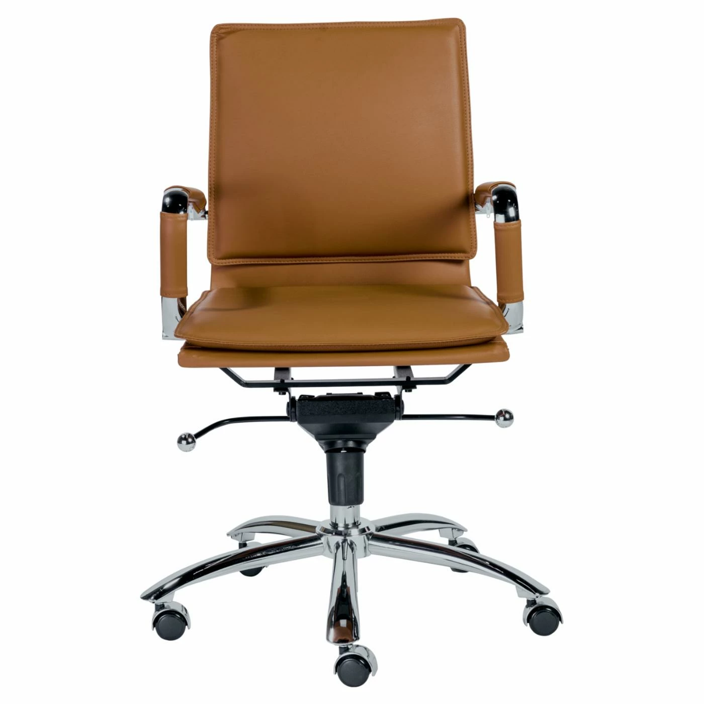 Give your office a sophisticated new look by pairing your desk with the Euro Style Gunar Pro Low Back Office Chair. This rolling chair features an adjustable seat with fixed arms for added support. The padded seat and back are finished with cognac leather with a warm look.