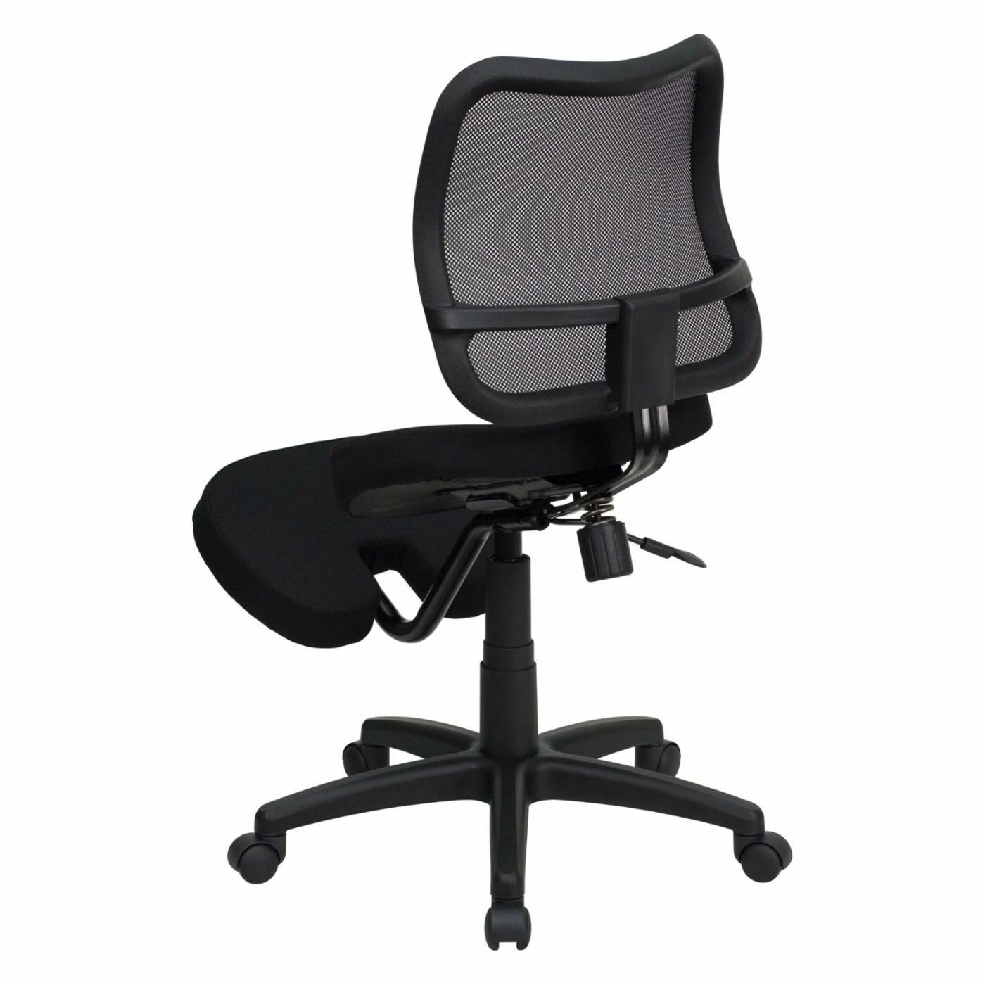 - Curved polypropylene mesh back and thick padded seat