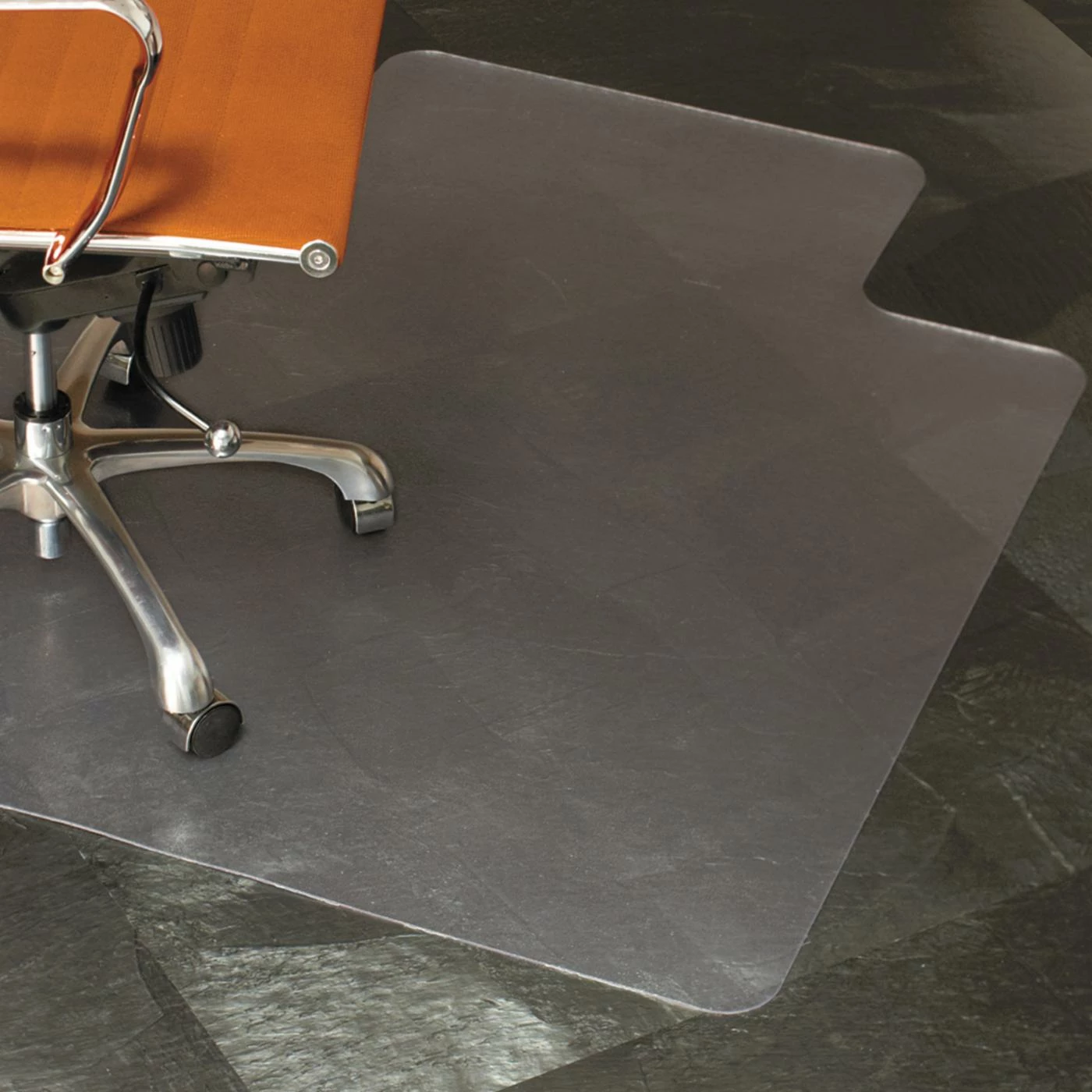 Give your workspace an environmentally friendly upgrade with the ES Robbins 36 x 48 Natural Origins Clear Chair Mat with Lip For Hard Floors. This chair mat is designed with a straight edge for use on hard floors such as wood, laminate, and tile. It’s crafted from renewable plant sources and is phthalate- and cadmium-free. It protects against caster damage and provides easier mobility throughout your desk area.