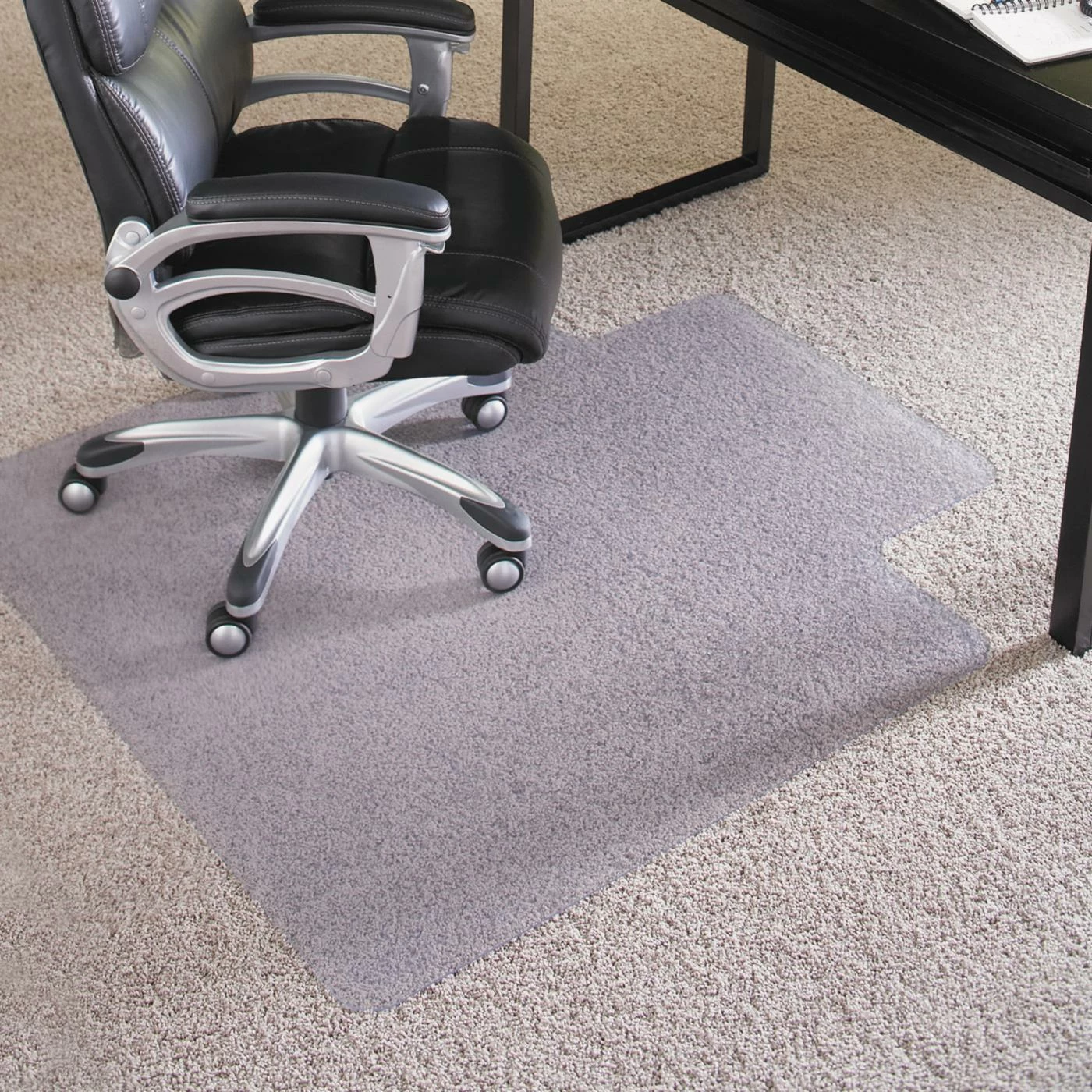 The perfect choice for heavy or high-traffic work areas, the ES Robbins 36 x 48 Performance Series AnchorBar Lip Chair Mat stands up under intensive office use. AnchorBarยฎ cleats hold this clear vinyl chair mat firmly in place. For use with high-pile carpeting up to one inch thick, it offers effortless movement within your work area.