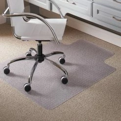 Designed to protect your carpeting from chair caster wear and tear, the ES Robbins 36 x 48 Task Series AnchorBar Lip Chair Mat is an ideal addition to home and light office environments. Built to work on low pile or commercial flooring up to 1/4 inch thick, this clear vinyl mat stays in place with the unique AnchorBarยฎ cleated bottom. Roll around your work area with ease atop this straight edged floor accessory.