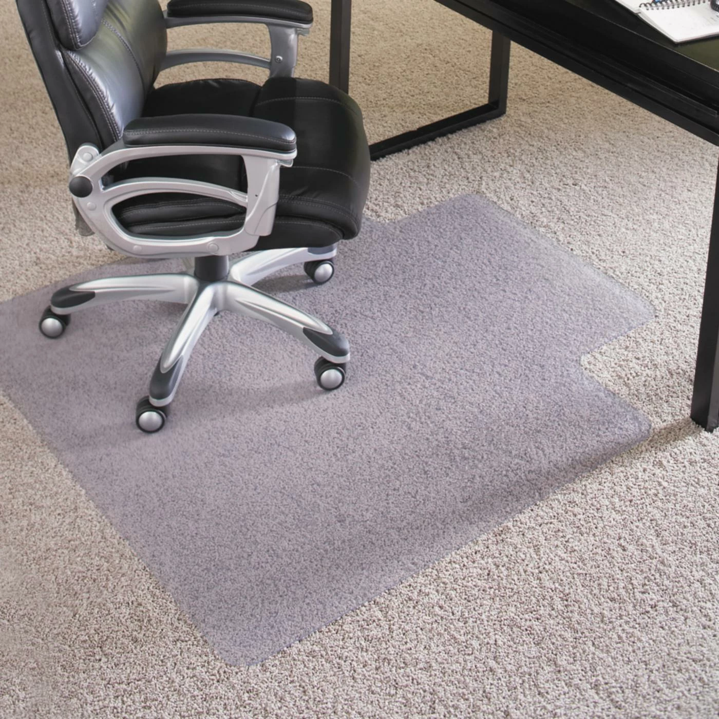 Built to withstand heavy and constant use, the ES Robbins 45 x 53 Performance Series AnchorBar Lip Chair Mat is securely held in place with the AnchorBarยฎ cleated bottom. Designed for high pile carpeting up to one inch thick, this durable vinyl office mat offers smooth, effortless movement and protection against long-term chair caster wear and tear. Give your workstation the high-performance efficiency of this indispensable office accessory.