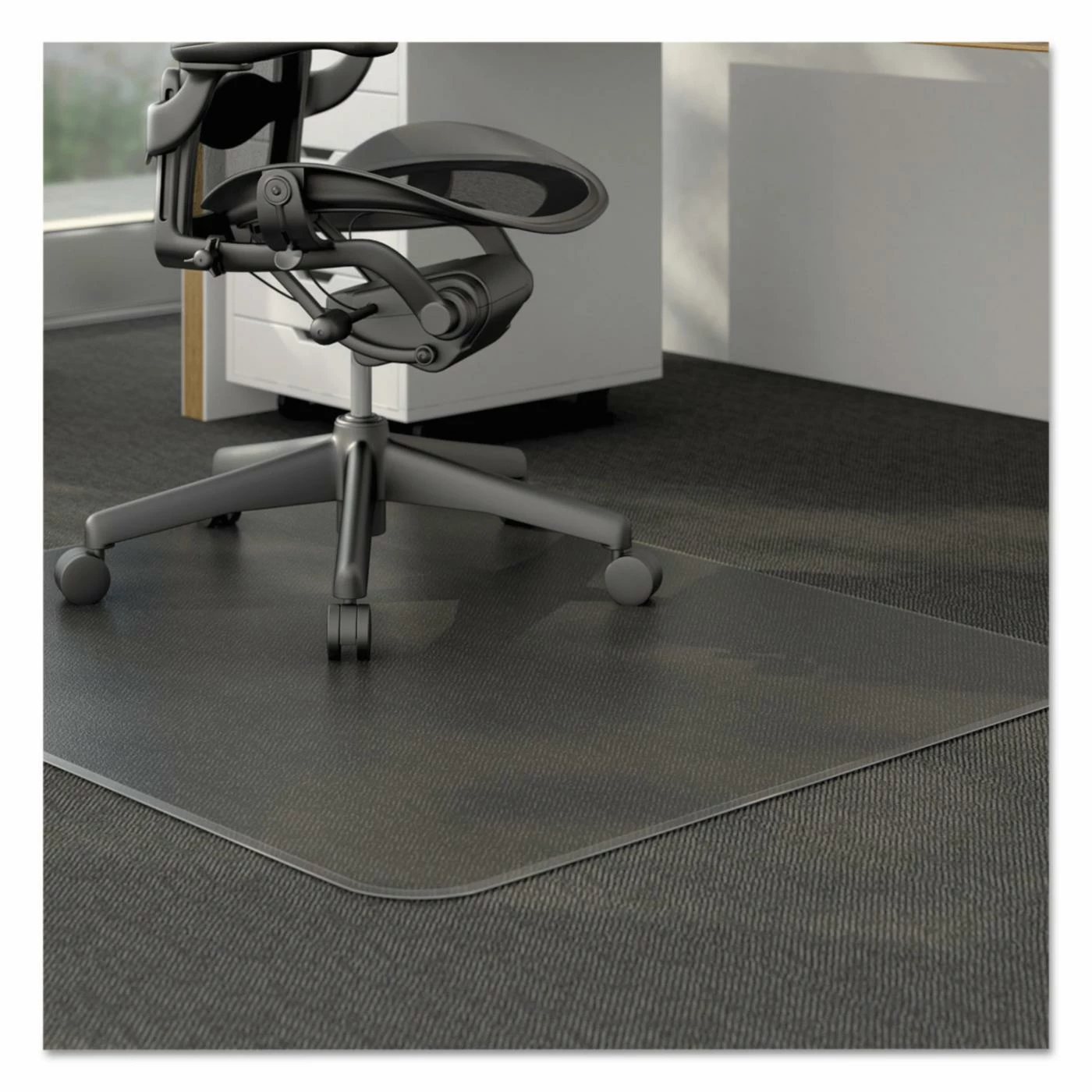 Upgrade your workspace with the Universal 46 x 60 Studded Chair Mat for Low Pile Carpet. Crafted from phthalate- and cadmium-free vinyl for an exceptionally clear design, this chair mat protects low-pile carpeting up to 3/8 inch thick from heavy traffic, caster wear-and-tear, and spills. Superior gripping studs keep it securely in place, giving you a smoother, effortless rolling surface.