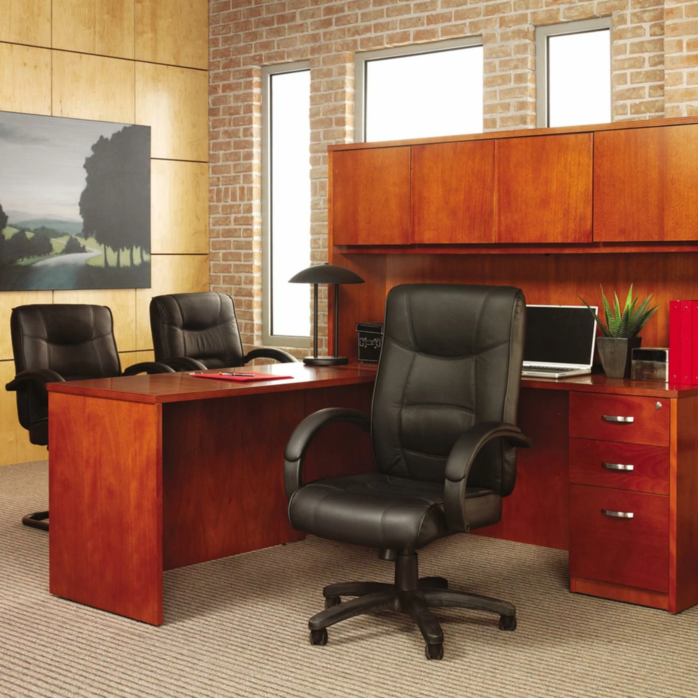 Complete your office with a touch of luxury, compliments of the Alera Strada Series Top-Grain Leather High-Back Swivel/Tilt Chair. Upholstered with genuine top-grain leather in your choice of available colors, this sleek professional chair shows off tailored stitching and has a circulation-boosting waterfall seat. Leather-capped armrests make the chair even more comfortable during long workdays. Fabricated out of long-lasting nylon, the stable base is shaped like a five-pointed star and is finished with dual-wheel casters that roll with ease.
