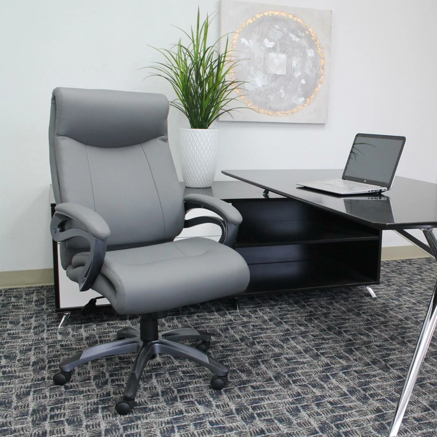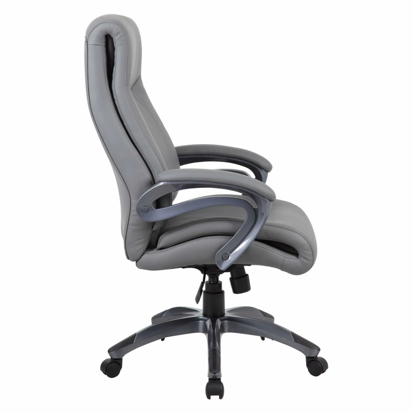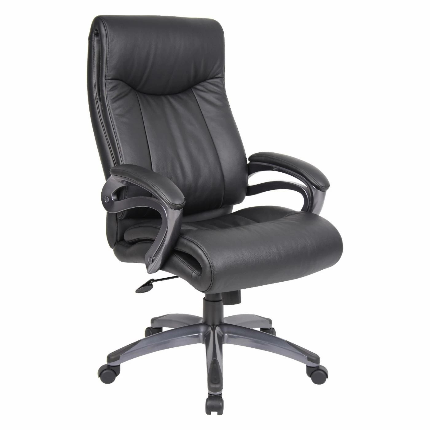 Make long workdays more comfortable with theBoss Double Layer Executive Chair. A double-layer pillow top design provides plenty of cushioned support, and you can adjust the tilt and the seat height to suit your needs. Upholstered in black leatherplus material, the chair has the sumptuous feel of leather but is durable and simple to maintain.