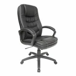 Sit back, relax, and enjoy getting extra work done with the Comfort Products Twin-Cushion Bonded Leather Executive Chair- Black in your home office or work space. Featuring rich, soft bonded leather upholstery, this chair also features a black nylon base with padded, molded armrests for added comfort. The stitching contrasts with the black upholstery, while the chair itself has tilt, tension, lock, swivel, and pneumatic lift height adjustment for better ergonomics.Β
