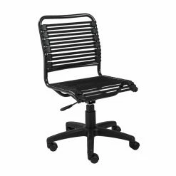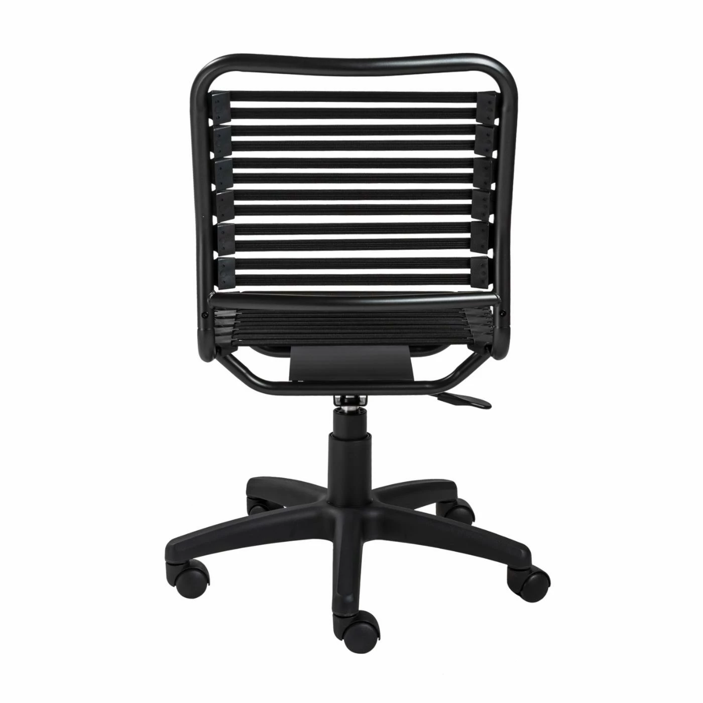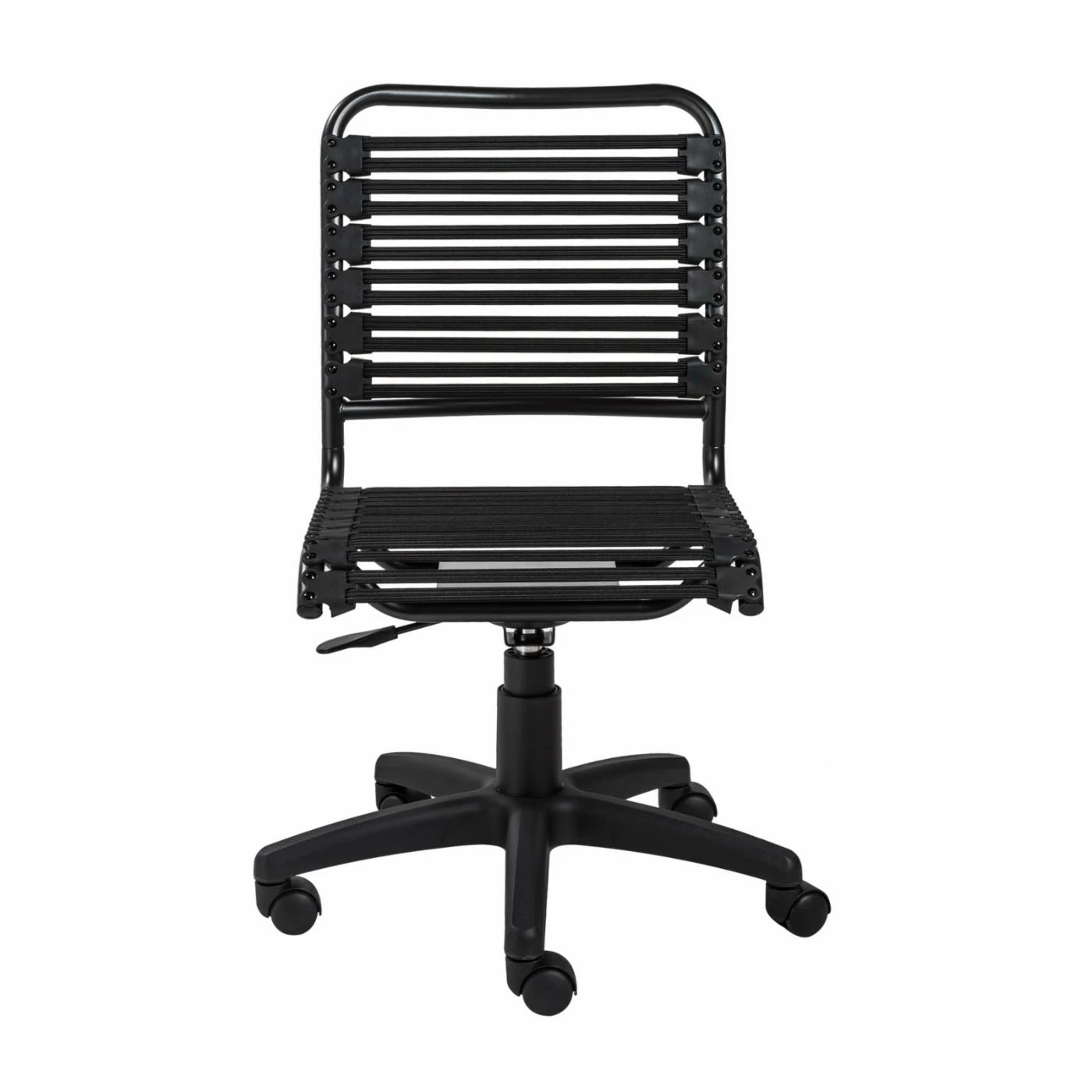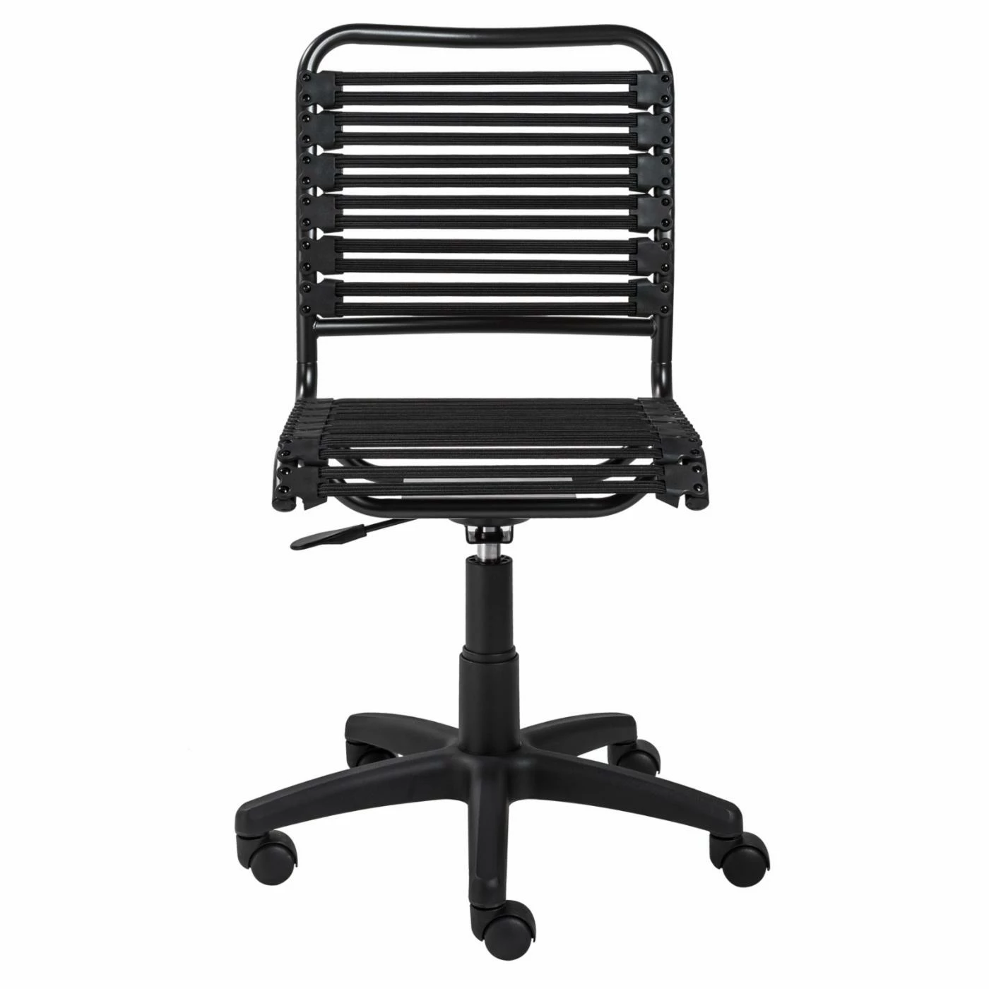 Flexible yet supportive bungee cords form the seat and backrest on the Euro Style Allison Bungee Flat Low-Back Armless Office Chair. This frame of this office chair is constructed of powder coated steel and the base is made of nylon. It’s equipped with nylon casters, and it will swivel for mobility. Choose from the available colors to best coordinate with office furniture and dรฉcor. The seat height will adjust for comfort.