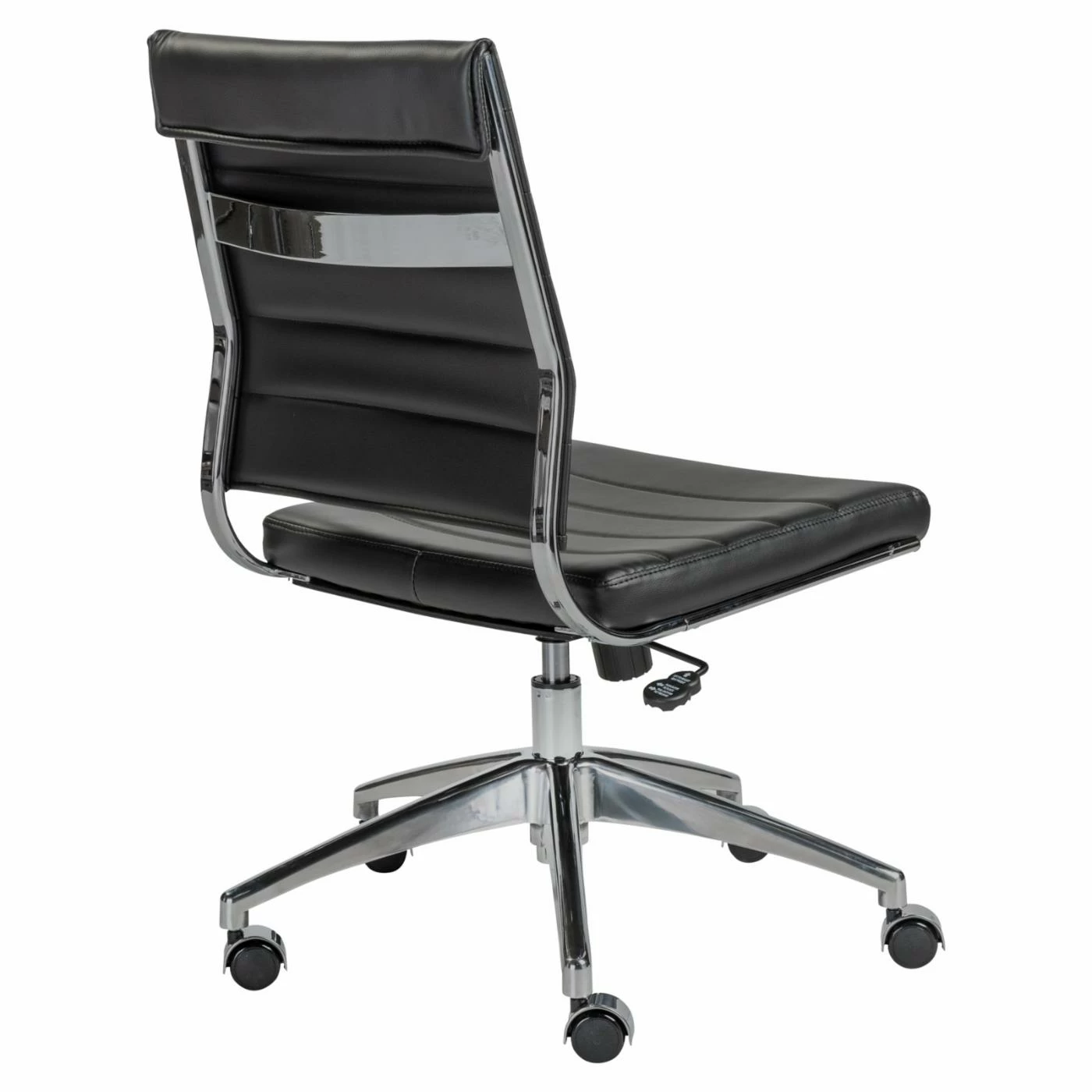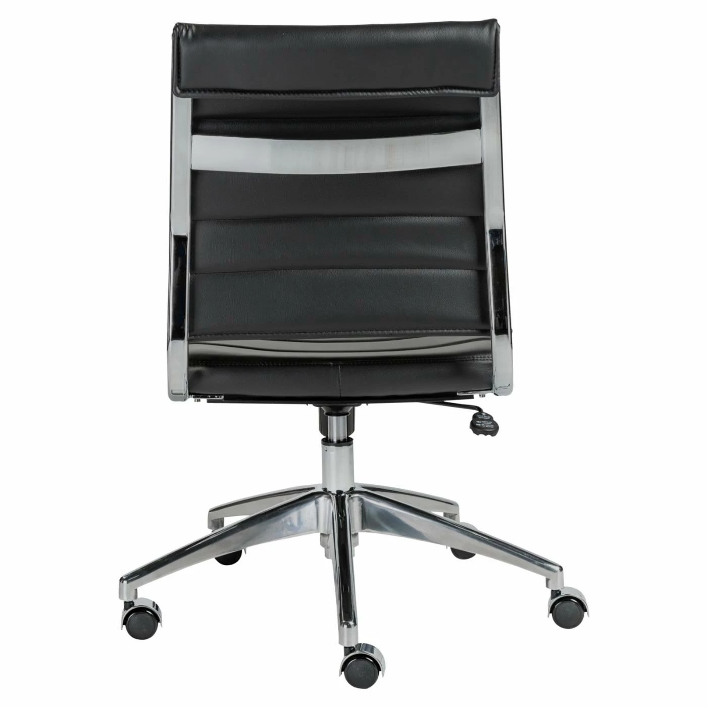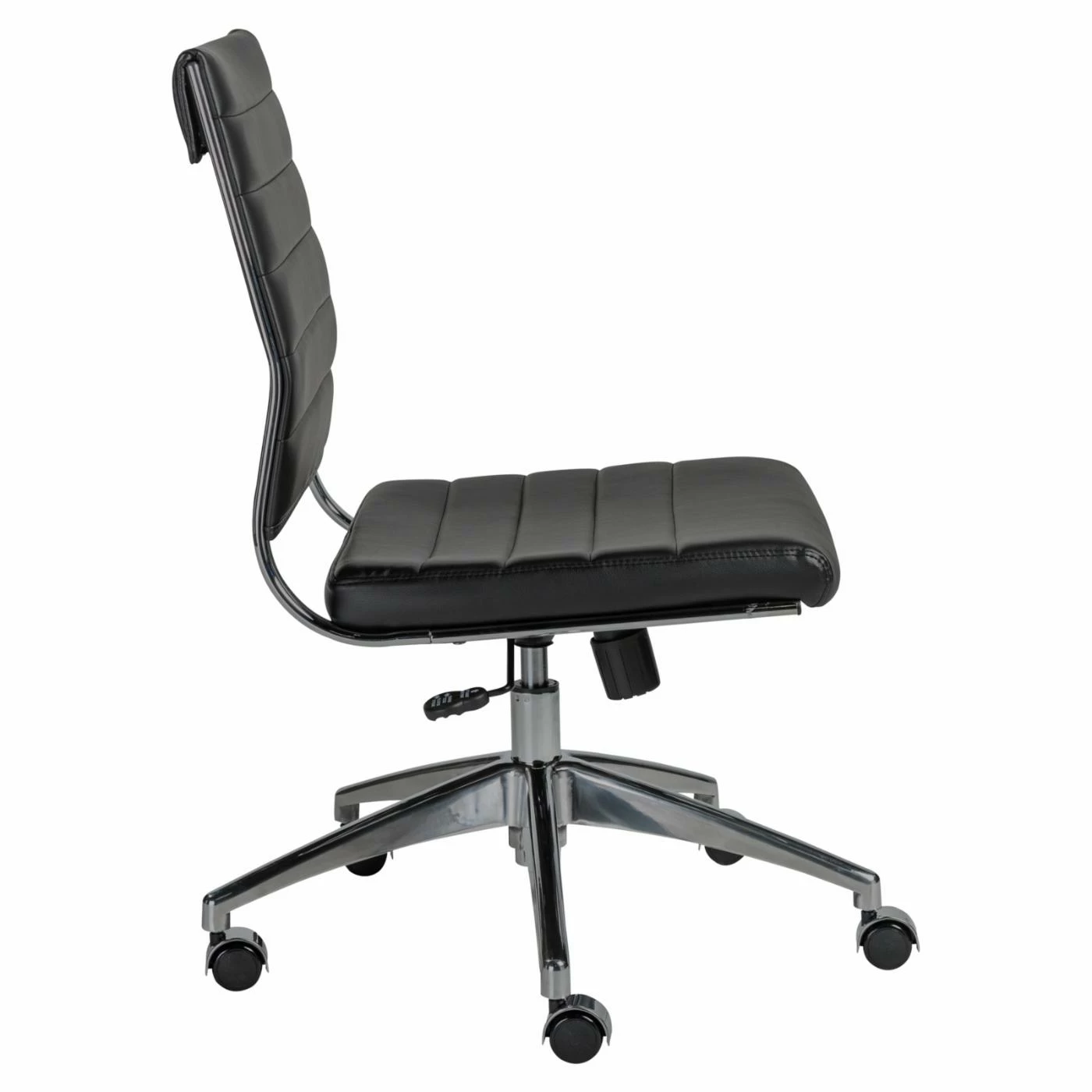 Perfect for those busy days at work, the Euro Style Axel Low Back Office Chair is a sleek and comfortable choice for getting things done. It offers a soft and comfortable ribbed black leatherette back, wrapped over a plush foam seat for maximum comfort. Its armless design gives you easy movement to get tasks done. The swivel feature on this seat allows you to move about, so you can multitask easily at your workstation. A polished aluminum base is the final modern touch on this sleek chair.