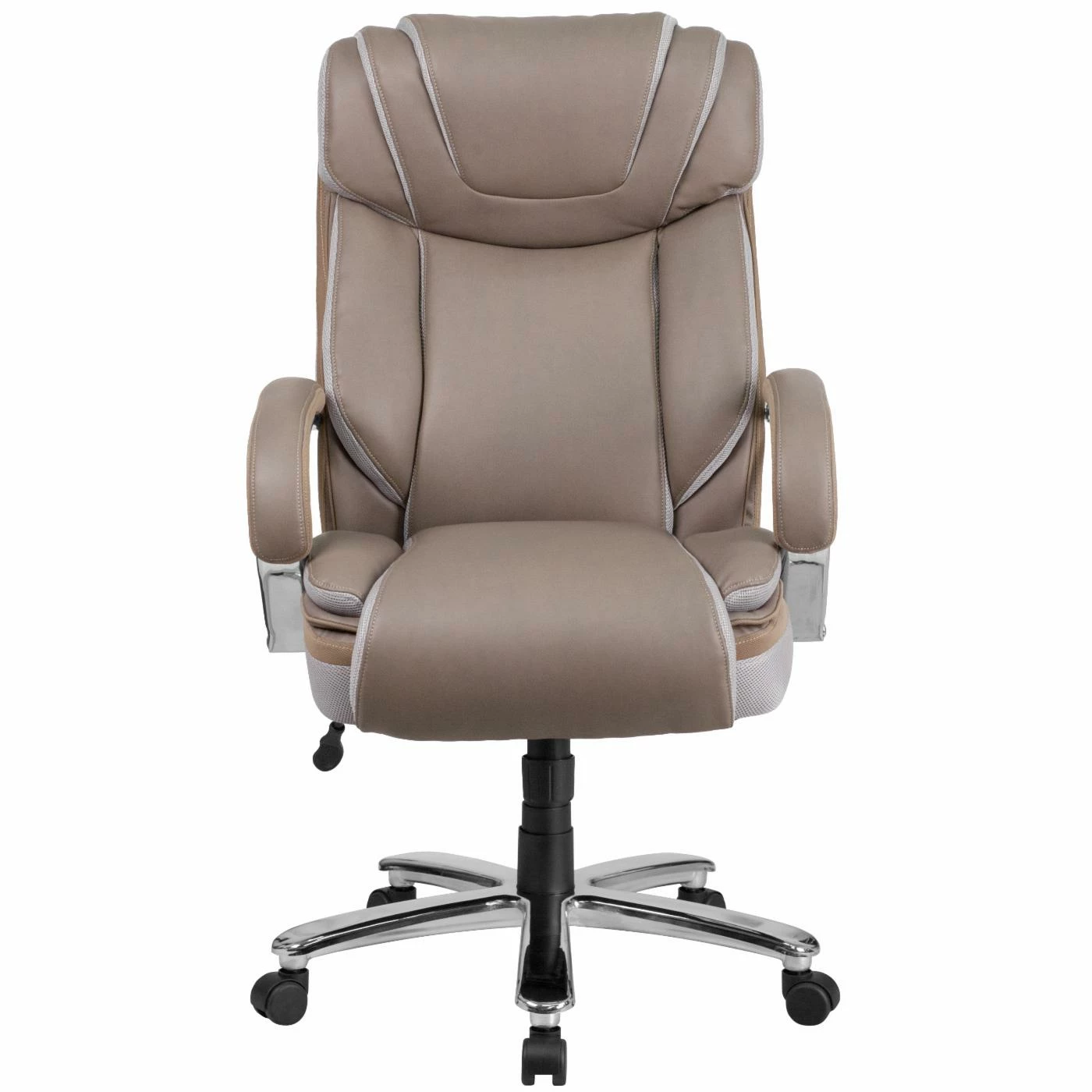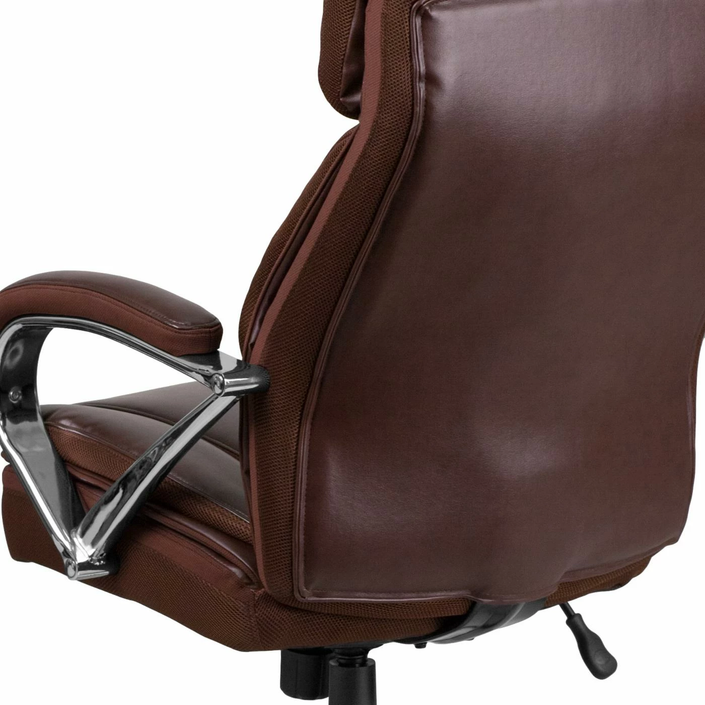 Pair your executive desk with the Flash Furniture HERCULES Series Big & Tall Leather Executive Swivel Office Chair with Extra Wide Seat. This extremely plush chair features 6 inches of foam padding in the wide seat. A contoured back and plush headrest adds incredible comfort, especially when utilizing the tilt mechanism. Chrome details and LeatherSoft upholstery enhance the top-quality construction and style of this chair.