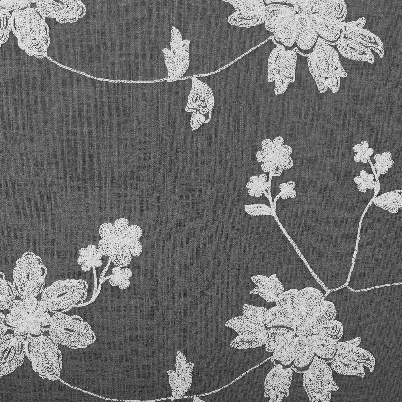- Gray and white upholstery with floral pattern