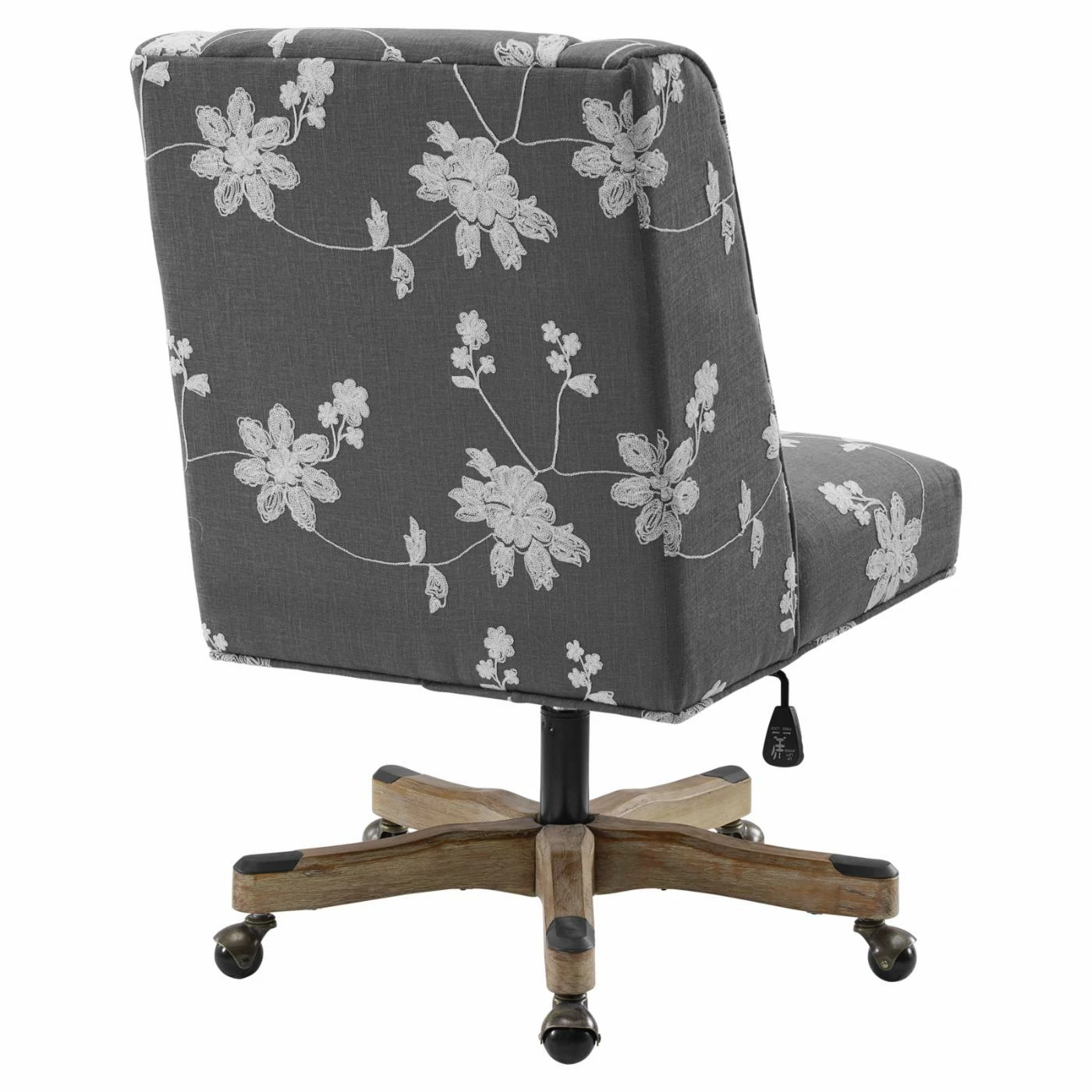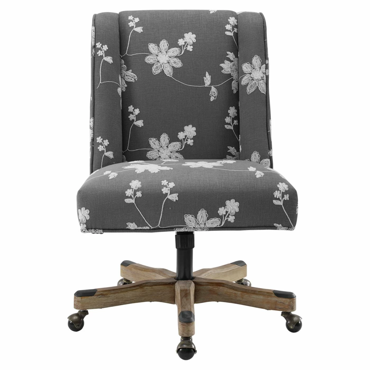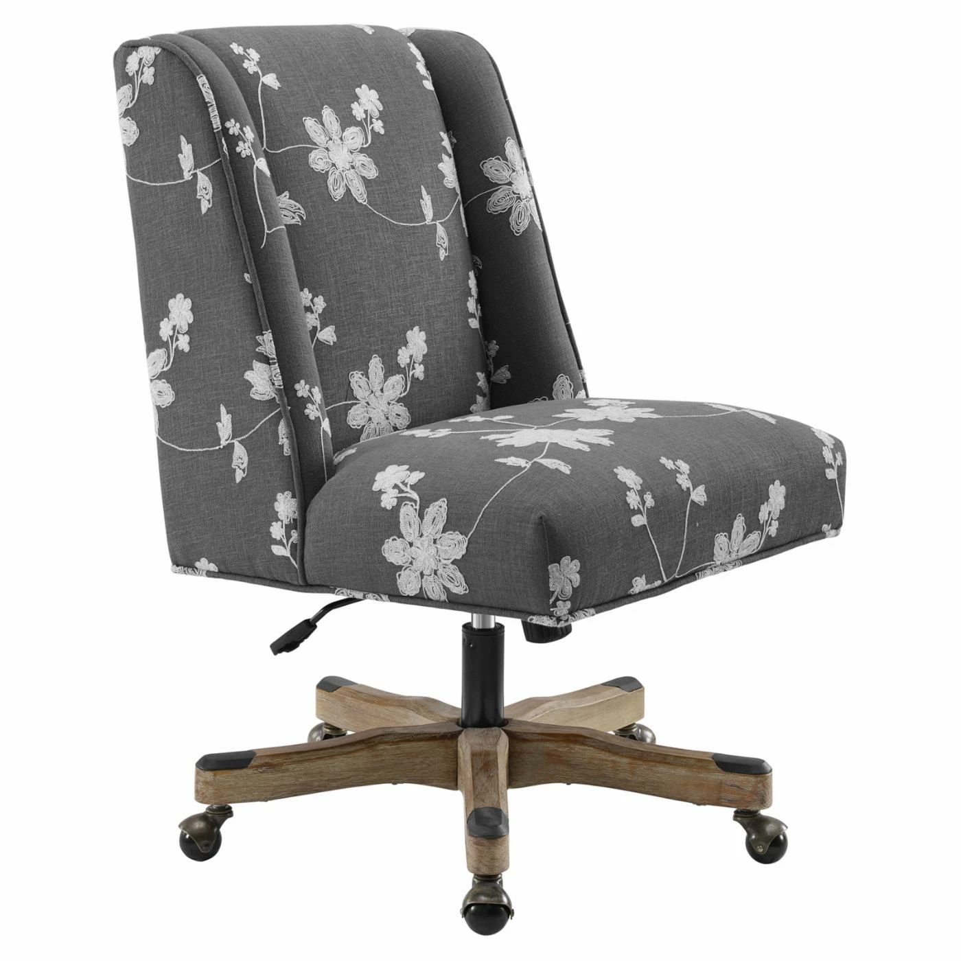 The Linon Draper Floral Upholstered Adjustable Height Office Task Chair is evidence that a home office chair can look as good as it works. This highly functional chair features a swivel feature, has adjustable gas lift height control, and tilt control. Its foam cushioning and supportive back offer lasting comfort for sitters. With its elegant floral upholstery and versatile hues, this office chair promises to complement your dΓ©cor with its sophisticated style.