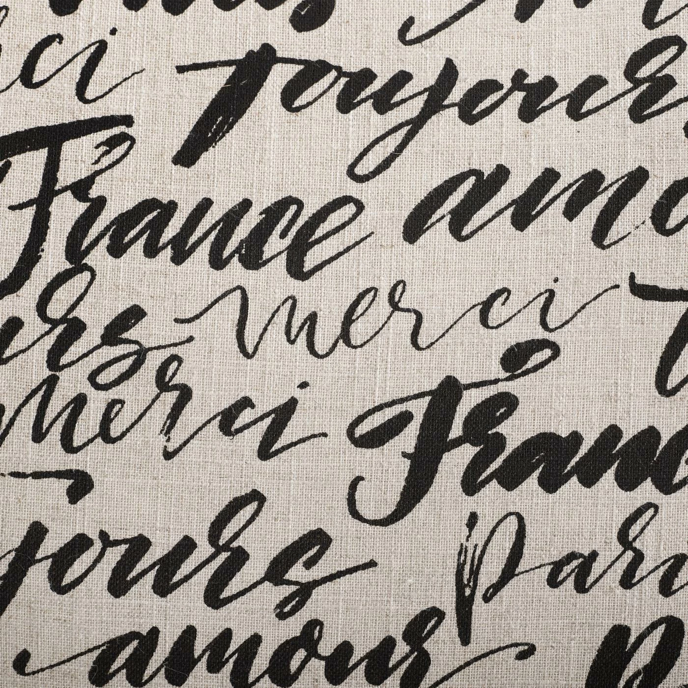 - Brown and beige upholstery with French script pattern