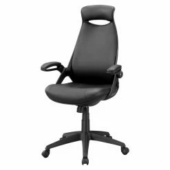 The Monarch Specialties Modern Faux Leather High-Back Executive Office Chair is perfect for the modern home or office. This decidedly contemporary design is upholstered in an easy-to-clean, black leather-look fabric. Five nylon casters support a sturdy base and glide easily over low pile carpet and flooring. The padded seat and armrests offer the ultimate comfort and the seat can be adjusted from 18.5 inches to 22.25 inches so you can achieve optimal positioning. This chair is designed to keep you in the right posture through many years of use.