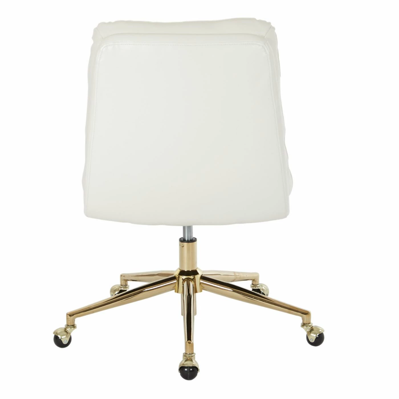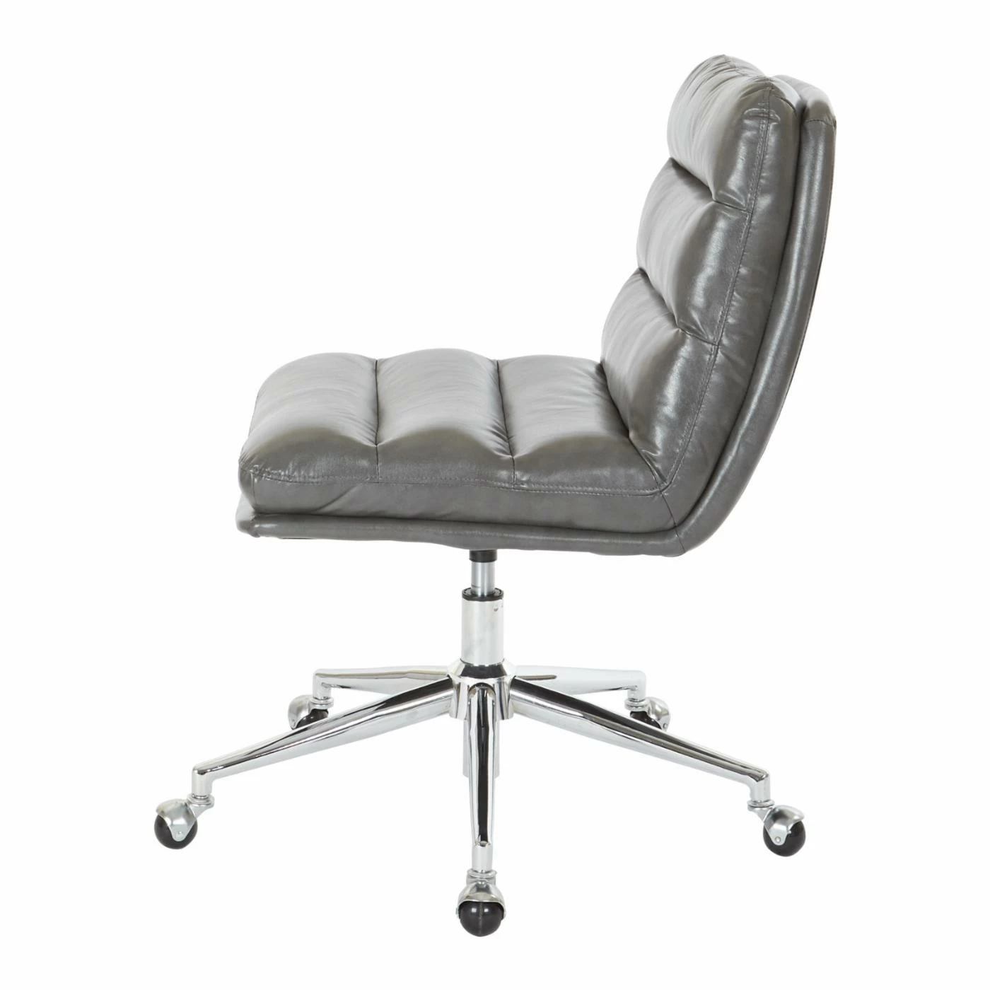Get ready to update your resume, because once you start getting work done in the OSP Home Furnishings Legacy Faux Leather Office Chair, you can put Looking Fab on the top of your skills list. This chair is modeled after a mid-century modern chair with an armless form and triangular backrest. The frame is made from metal that is home to super-thick padding inside faux-leather upholstery. The horizontal channeling of the seat and back cushion adds to the modern style. You have a selection of available finish and faux-leather colors, so be sure to pick the combo that best accents your space.
