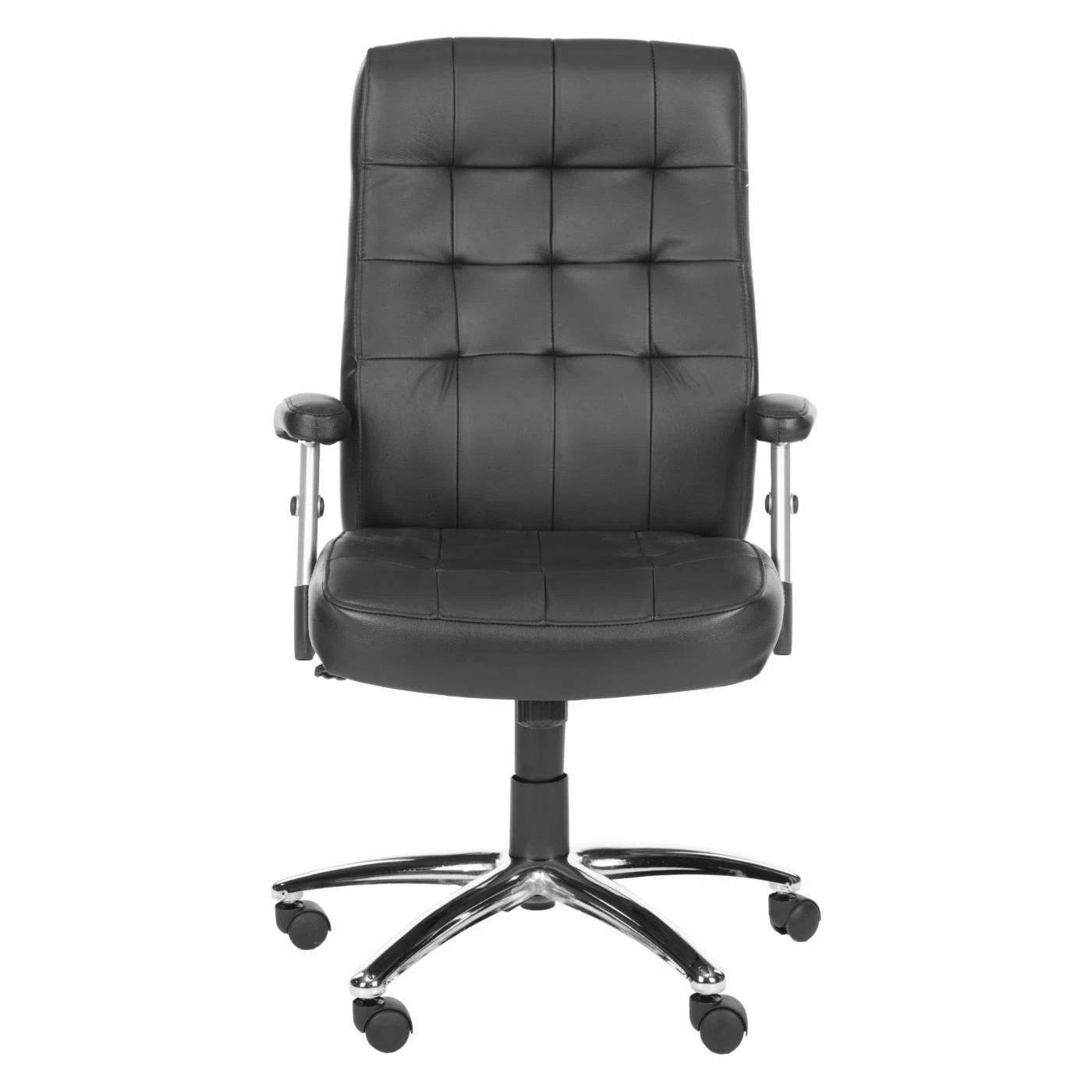 Comfy bodies lead to comfy minds, and comfy minds lead to focus, productivity, and (finally) getting all that office work done – why thank you, Safavieh Olga Desk Chair – Black. Destined to be your new favorite co-worker, this desk chair is cozy as can be thanks to the combination leather/PVC black upholstery. A tufted pattern on the seat back adds a luxe look, and your elbows will love the extra padding on the armrests. Plus, the high-shine metal frame features rubber wheels, and the seat height is adjustable, so it’s easy to get that perfect perch.