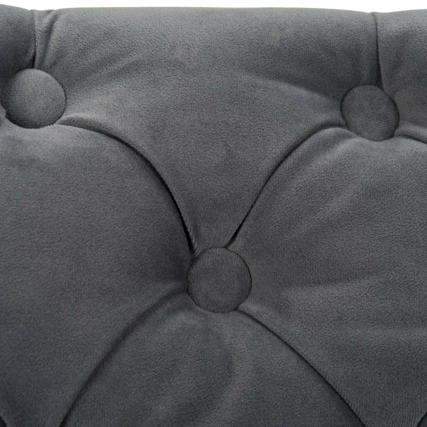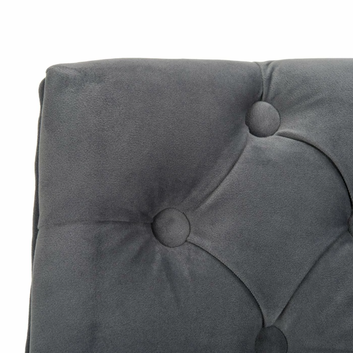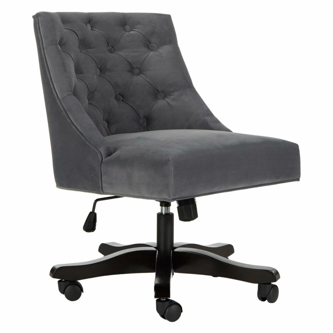 The Safavieh Soho Tufted Velvet Swivel Desk Chair is crafted with a sturdy frame of birch and hardwood, then topped with ultra-soft cushioning and plush velvet upholstery in a contemporary gray shade of gray. The gently curved back provides a comfortable, supportive feel and features elegant button tufted detail that adds a touch of sophistication to your decor. This desk chair features sloping, barely-there arms, allowing you to sit close to your desk while working. The smart swivel design and durable caster wheels give you maximum mobility while you multi-task.