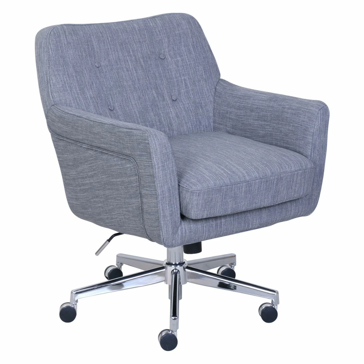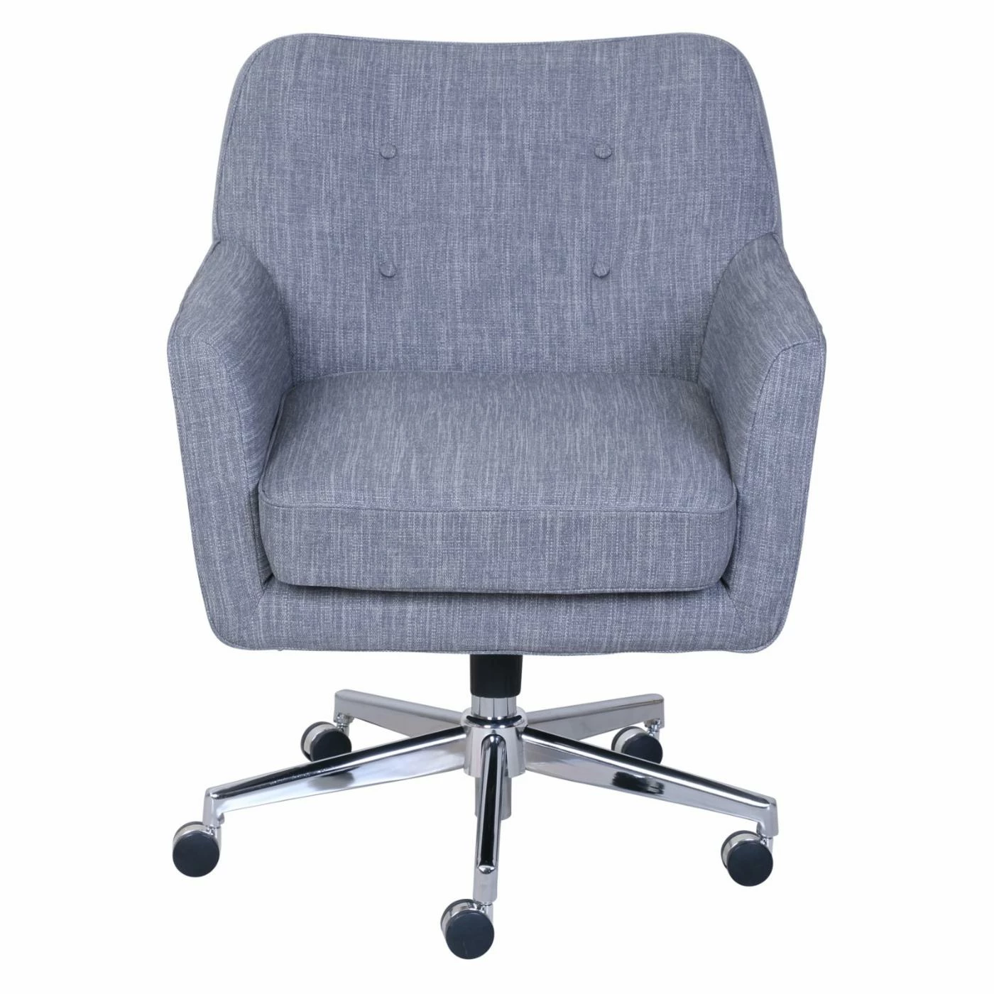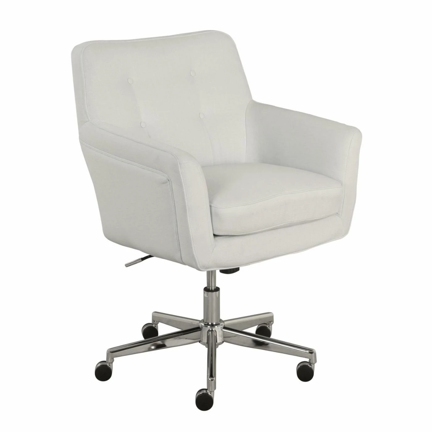 It has the look of a chic arm chair, but the Serta Ashland Home Office Chair is ready to work for you. This chair features fabric upholstery in your choice of color with button tufting. The seat and arms have memory foam and pocket coils for comfort. It sits on rolling casters for easy movement and includes a 360-degree swivel.