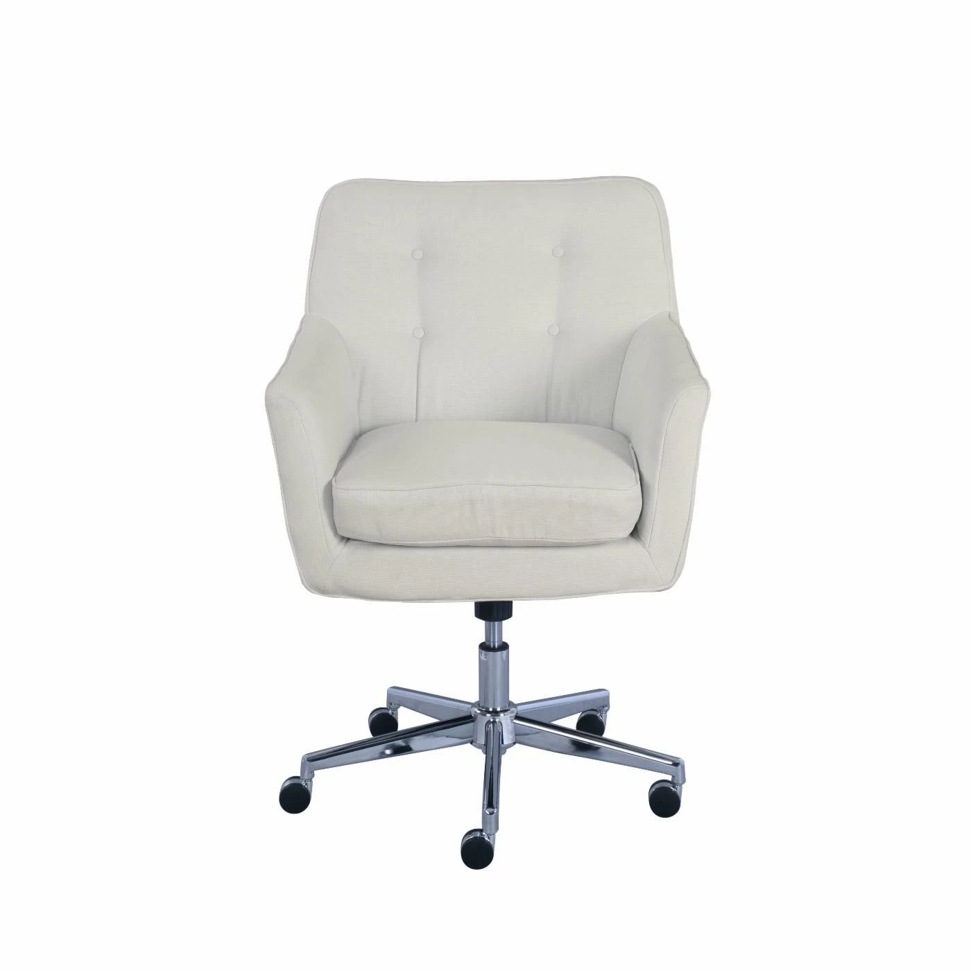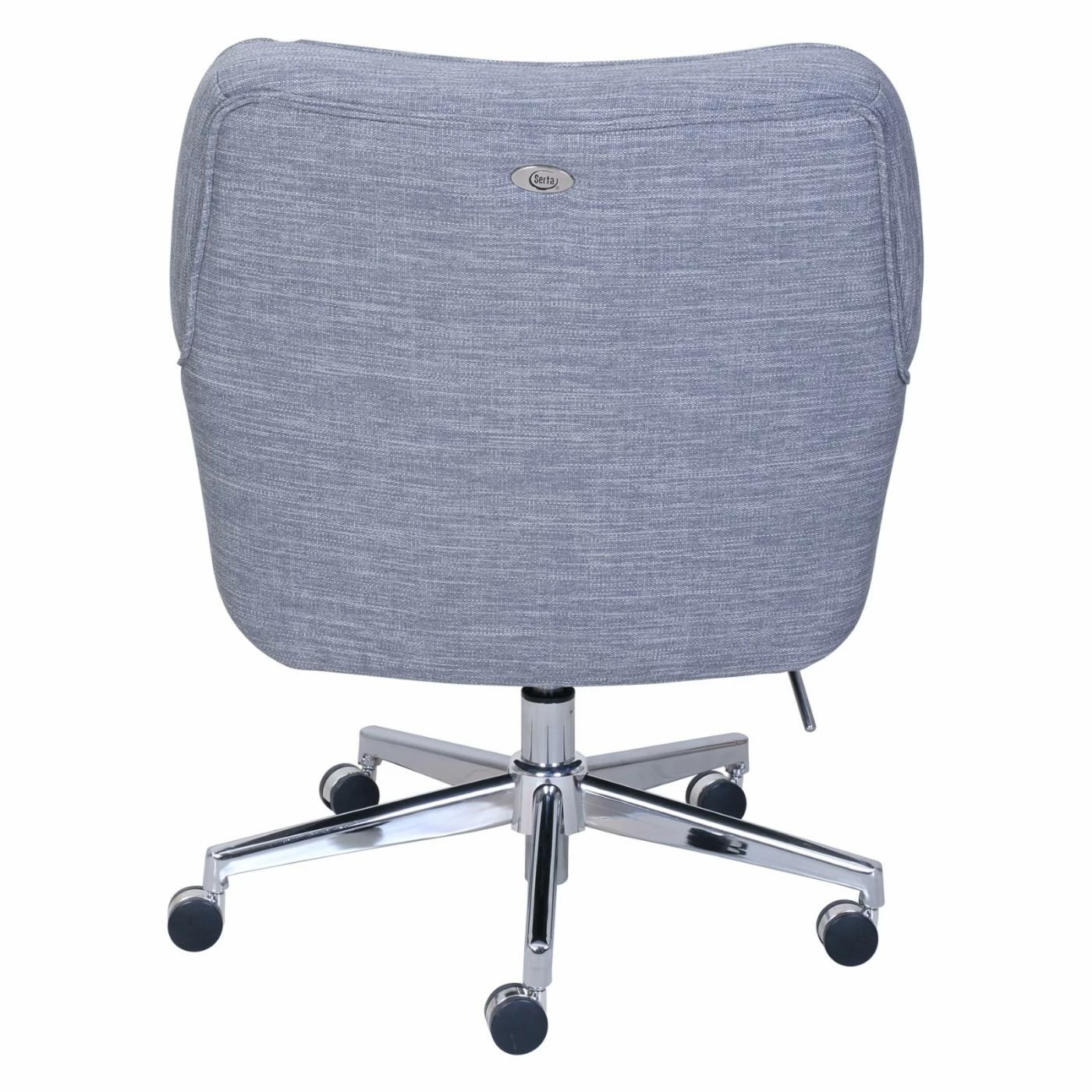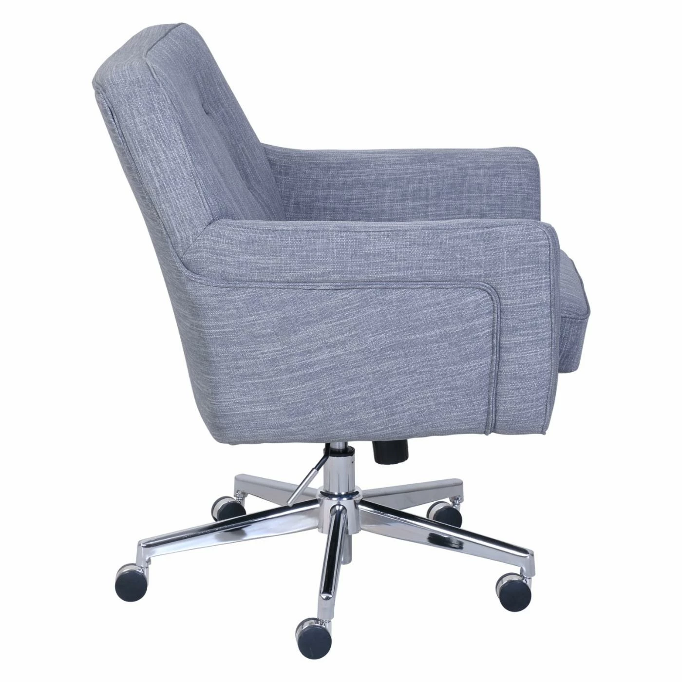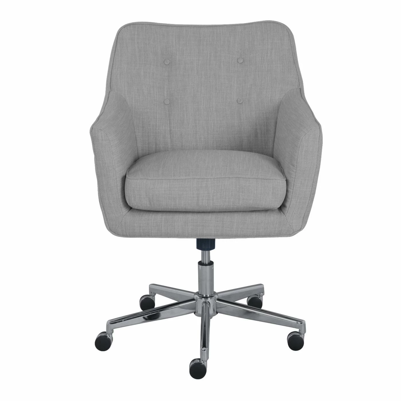 It has the look of a chic arm chair, but the Serta Ashland Home Office Chair is ready to work for you. This chair features fabric upholstery in your choice of color with button tufting. The seat and arms have memory foam and pocket coils for comfort. It sits on rolling casters for easy movement and includes a 360-degree swivel.