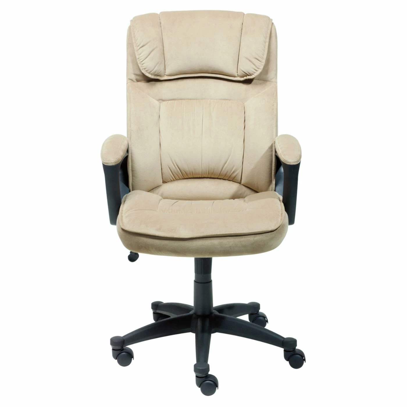 Sit comfortably for long periods of time on the soft Serta Microfiber Executive Office Chair – Light Beige. Upholstered in soft and smooth micro-fiber, this plush office chair comes with layered body pillows that offer your body a serene and tranquil seating experience. Its pillowed headrest provides added comfort and support for your neck, while the contoured lumbar ensures exceptional support for your lower back. For lessened pressure on the back of the legs, this sleek chair features a waterfall seat edge intended to increase leg circulation and reduce fatigue. Finding the perfect seating setting is made easy with the pneumatic seat-height lift with adjustable tilt tension knob and reclining lock out features. Assembly required.