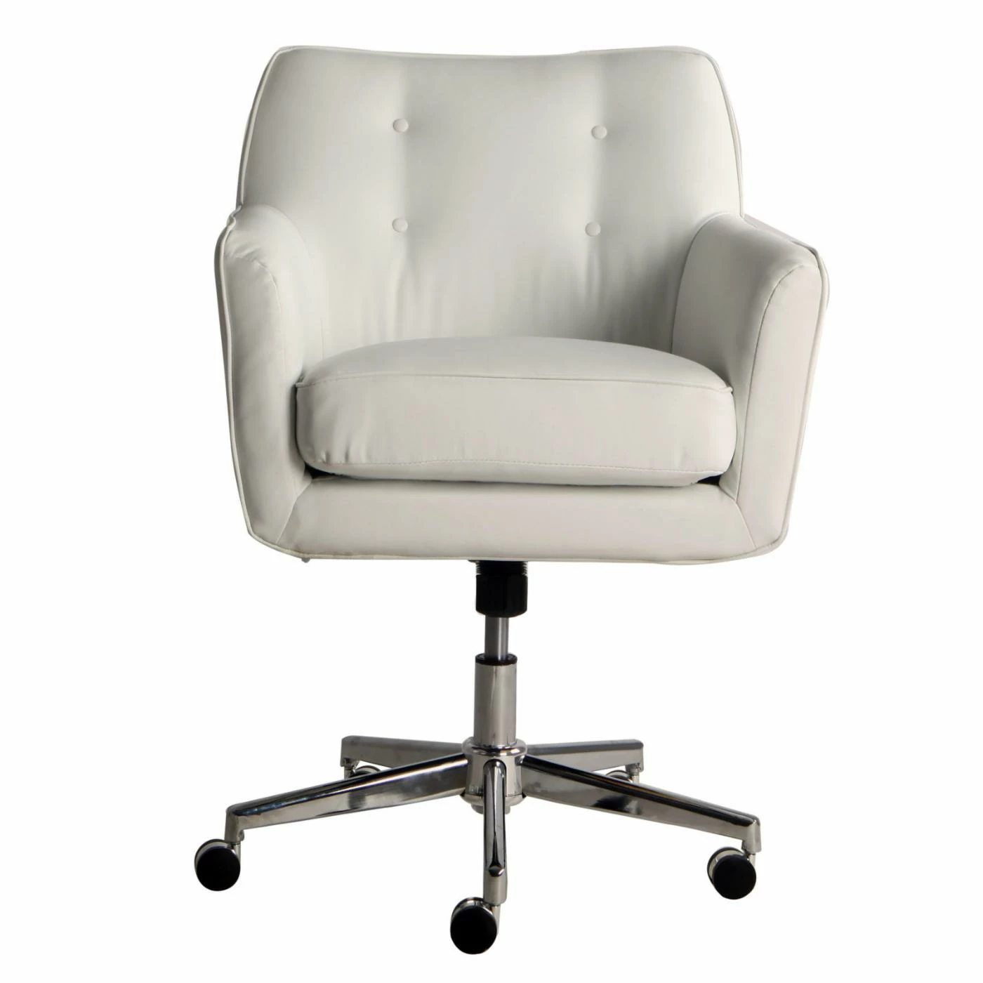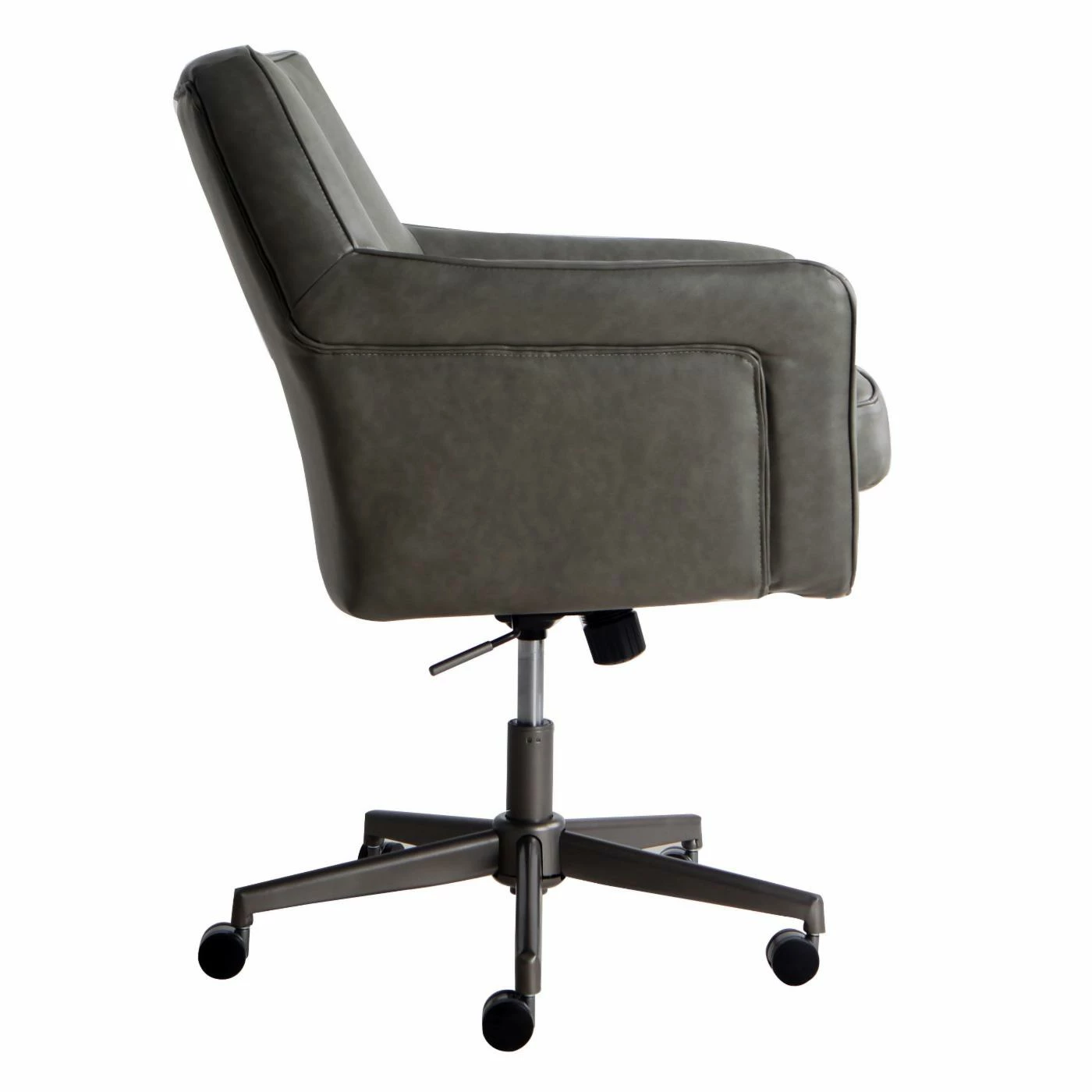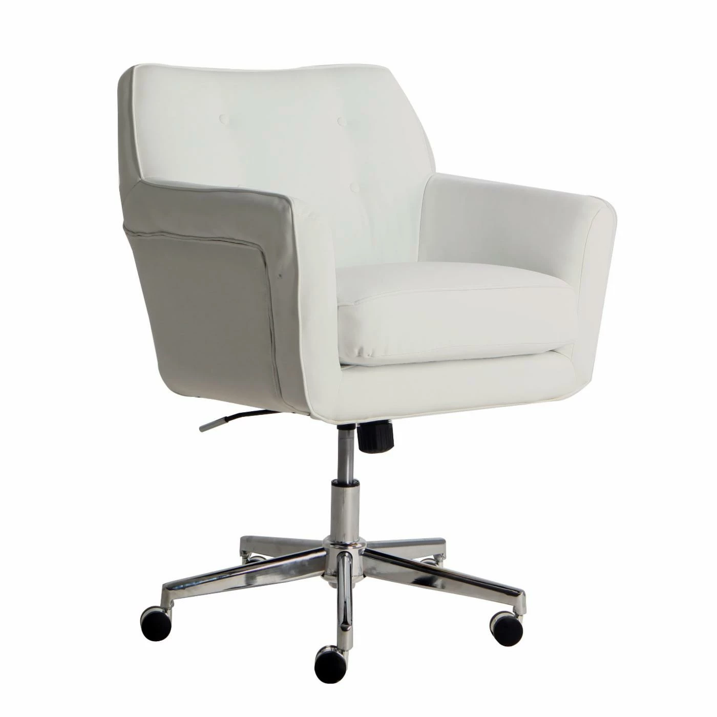 The seat of the Serta Style Ashland Home Office Chair surrounds you with memory foam cushioning. This chair is constructed of stainless steel and upholstered in bonded leather. Choose from available color options to best coordinate with your office. A 360ยฐ swivel and five wheels and casters provide you with easy mobility. A button-tufted backrest adds style to complete a contemporary look.