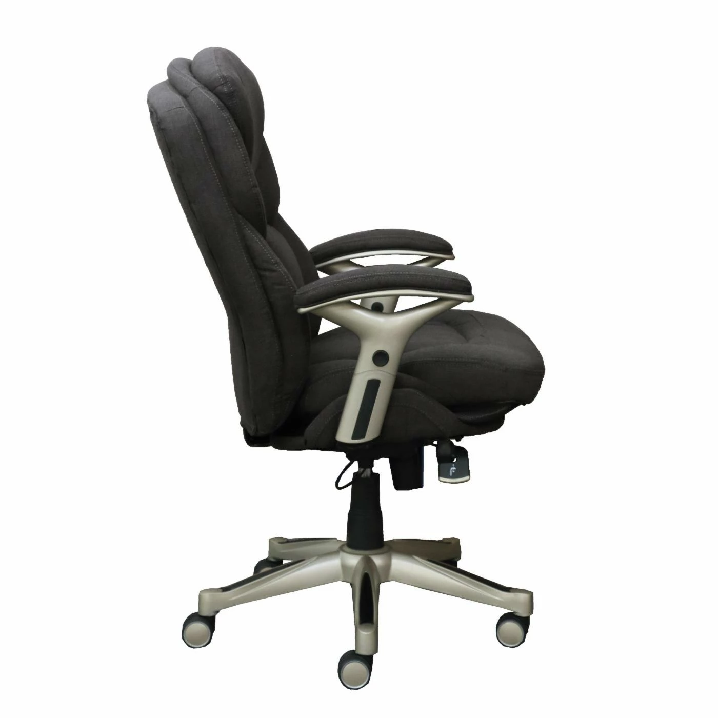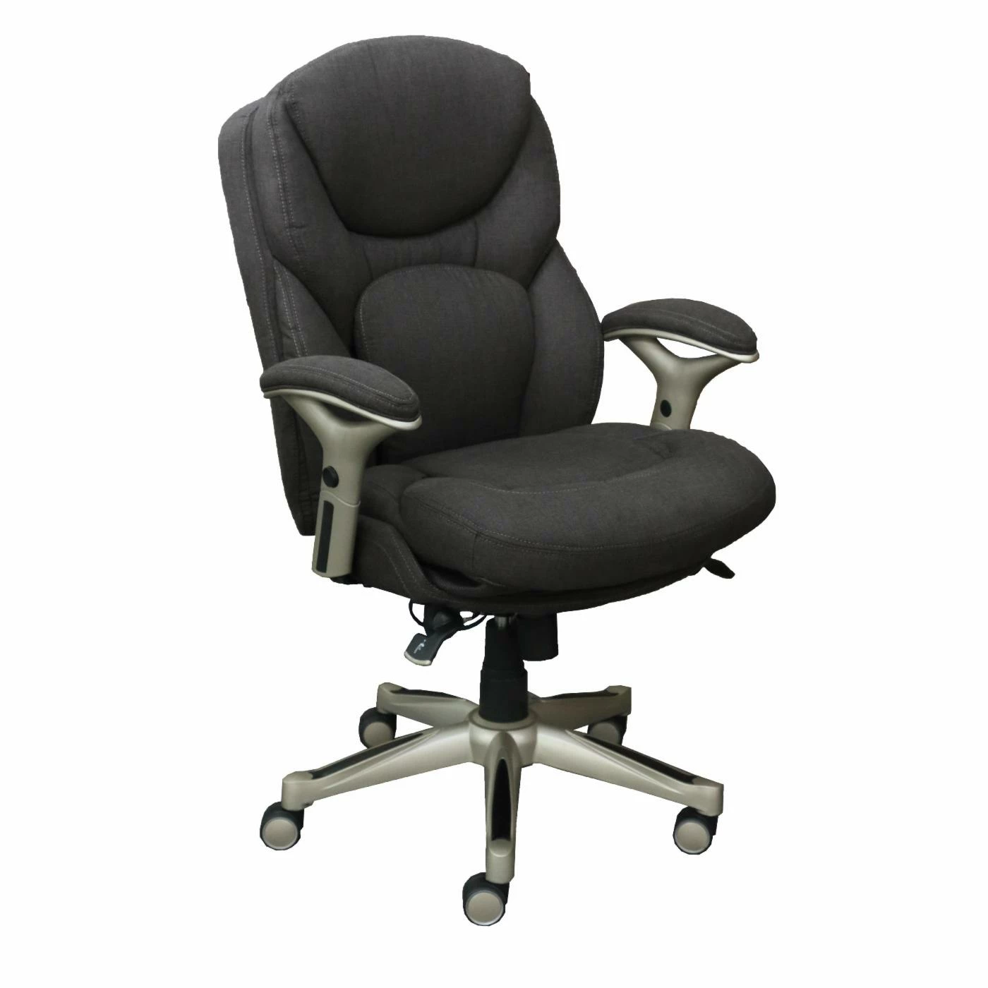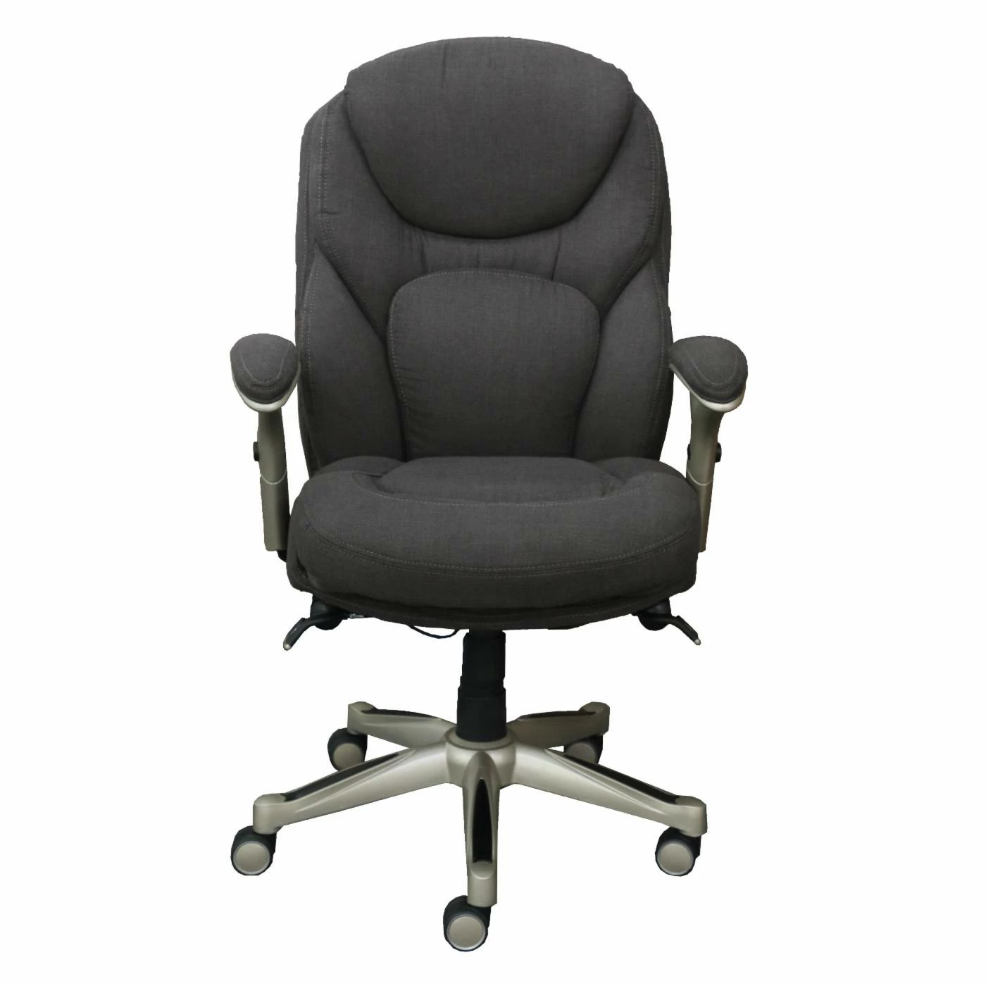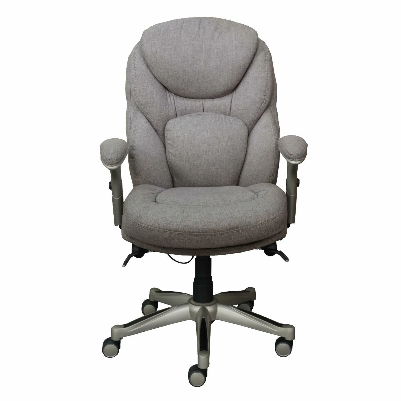 The plush comfort of Serta mattresses translates into a supportive office chair with the Serta Works Executive Office Chair with Back in Motion Technology. Layers of premium foam and ComfortCoils you only find in a mattress make this chair design a one-of-a-kind, ergonomic dream. The arms are padded and adjustable and the lower adjusts to pivot forward and flex the pelvis for better support and posture. The office chair sits on a swivel, five-caster base for mobility. Choose from available fabric upholstery colors to match your home office. Assembly is required.