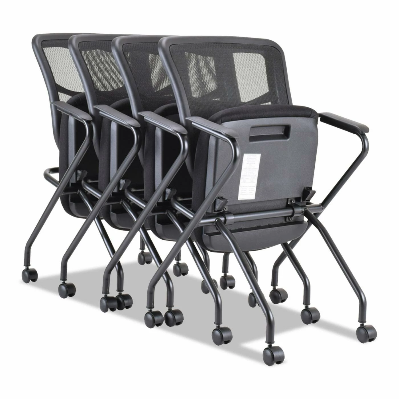 Ideal for training or conference rooms, or collaborative environments. Flip-up nesting seat design for easy high-density storage. Molded foam seat for resiliency and all day comfort. Cool breathable mesh back upholstery. Four-leg metal base with casters for durability and mobility.