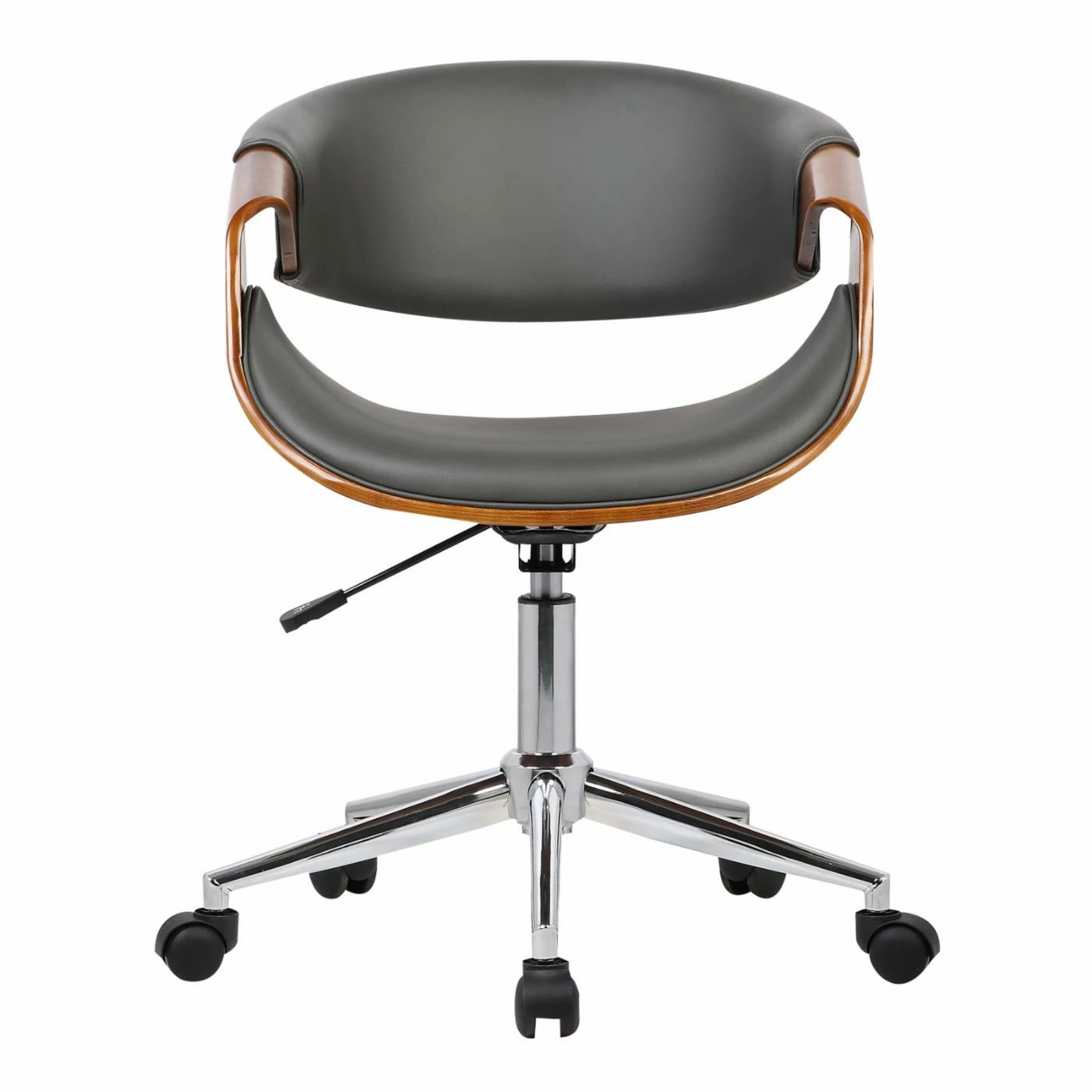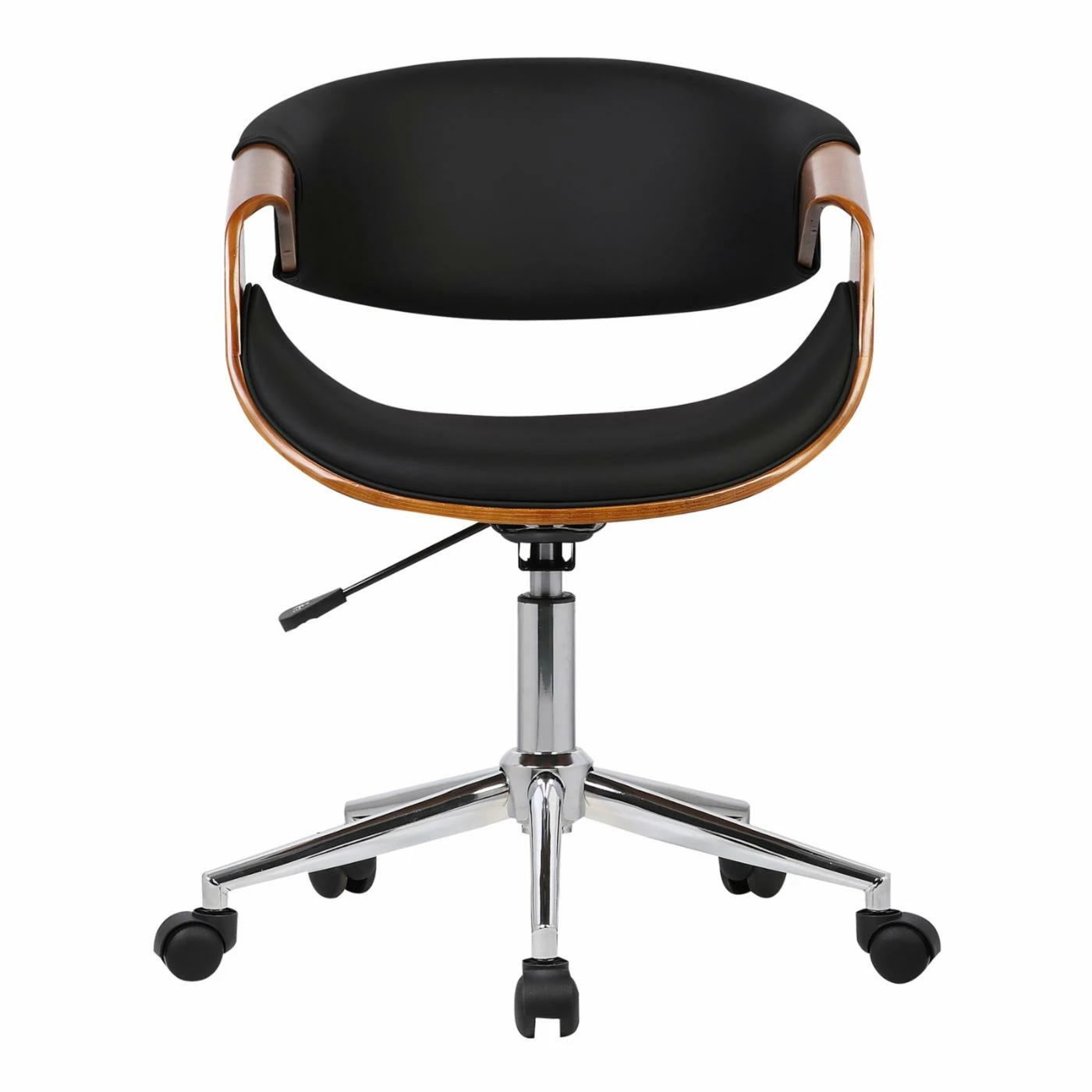 Combining the best of modern and mid-century design elements, the Armen Living Geneva Mid-Century Office Task Chair updates any office space. The faux leather upholstery in your choice of available colors highlights the beauty of the engineered wood frame, which is finished in a handsome walnut. Adjust the chair to the proper height using the gas lift mechanism and move easily around your office with the caster wheels and swivel design.