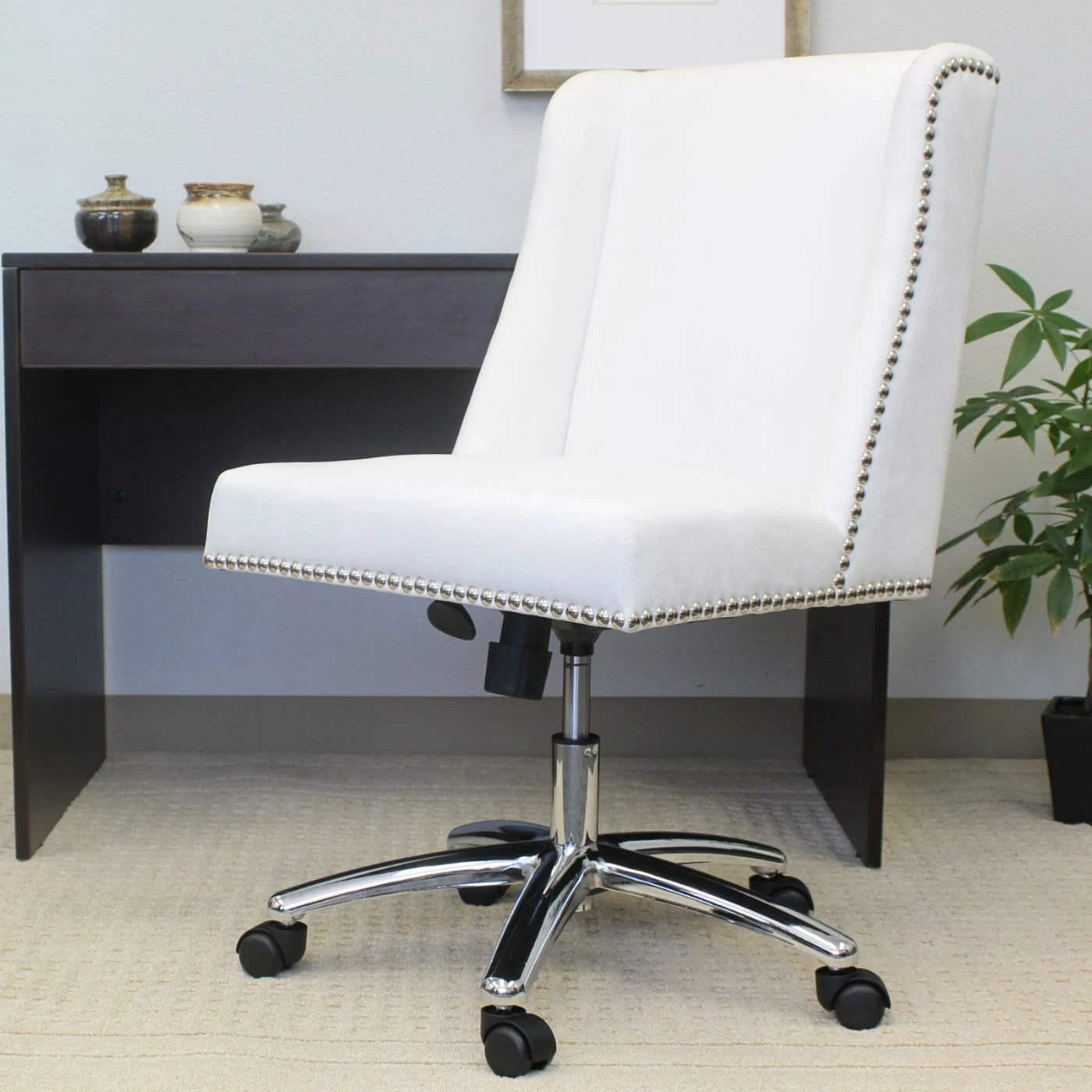 Add a little style to your busy work day with the Boss Decorative Commercial Grade White Office Task Chair. Perfect for creating a refined touch in your home office or work area, this task chair is upholstered in white velvet with hand-applied silver nailhead trim. And you’ll love the heavy-duty, commercial-grade design, which features a spring tilt mechanism with an upright locking position as well as a pneumatic gas lift seat height adjustment. The 25-inch chrome base provides optimal stability, too.
