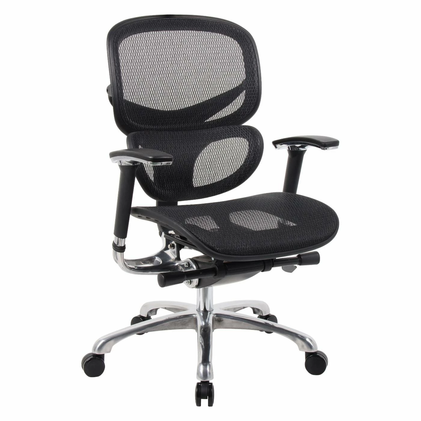 - Mesh seat with 27-in. chrome base
