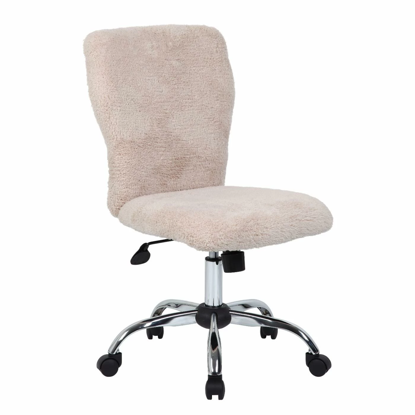 Keep cozy while you work with the Boss Tiffany Fur Chair- Cream. Adorable and plush, the chair functions like a high-quality office chair but features furry Sherpa upholstery in a soft cream color. But it’s not just for looks. It also features an upright locking position, an adjustable tilt tension control, and a gas lift for easy seat height adjustments. With a 25-inch chrome base, this chair also includes five hooded double wheel casters.
