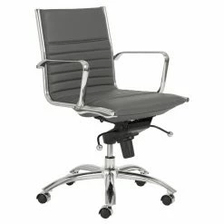 Long days in the office are no problem with the Euro Style Dirk Low Back Office Chair. Equal parts chic and comfy, this office chair features easy-to-clean leatherette upholstery in your choice of available color. It covers foam fill and a flat bungie band seat that’s wonderfully cozy. Chrome-finished aluminum armrests and steel base, tilt, swivel, gas lift, and polyurethane casters complete the design. BIFMA-approved components.