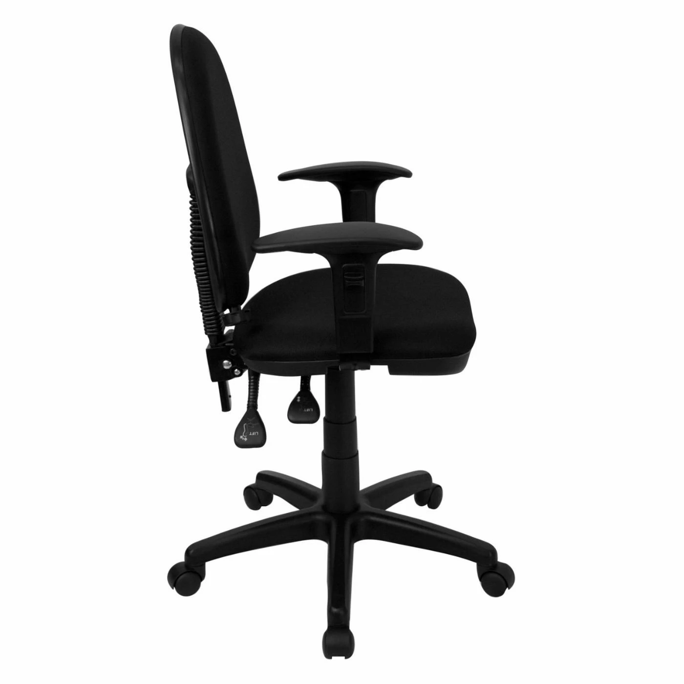 - Fabric seat and back with lumbar support