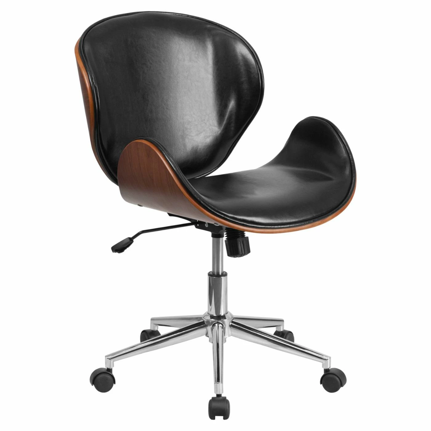Decorate your office or conference room in elegant fashion by surrounding it with the Flash Furniture Mid-Back Walnut Wood Swivel Conference Chair in Black Leather. This contemporary chair features wood backs and bases in your choice of available finishes. Soft foam padding and LeatherSoft fabric upholster this chair for a layer of style and comfort. Casters and a swivel seat allow for easy mobility around the room.