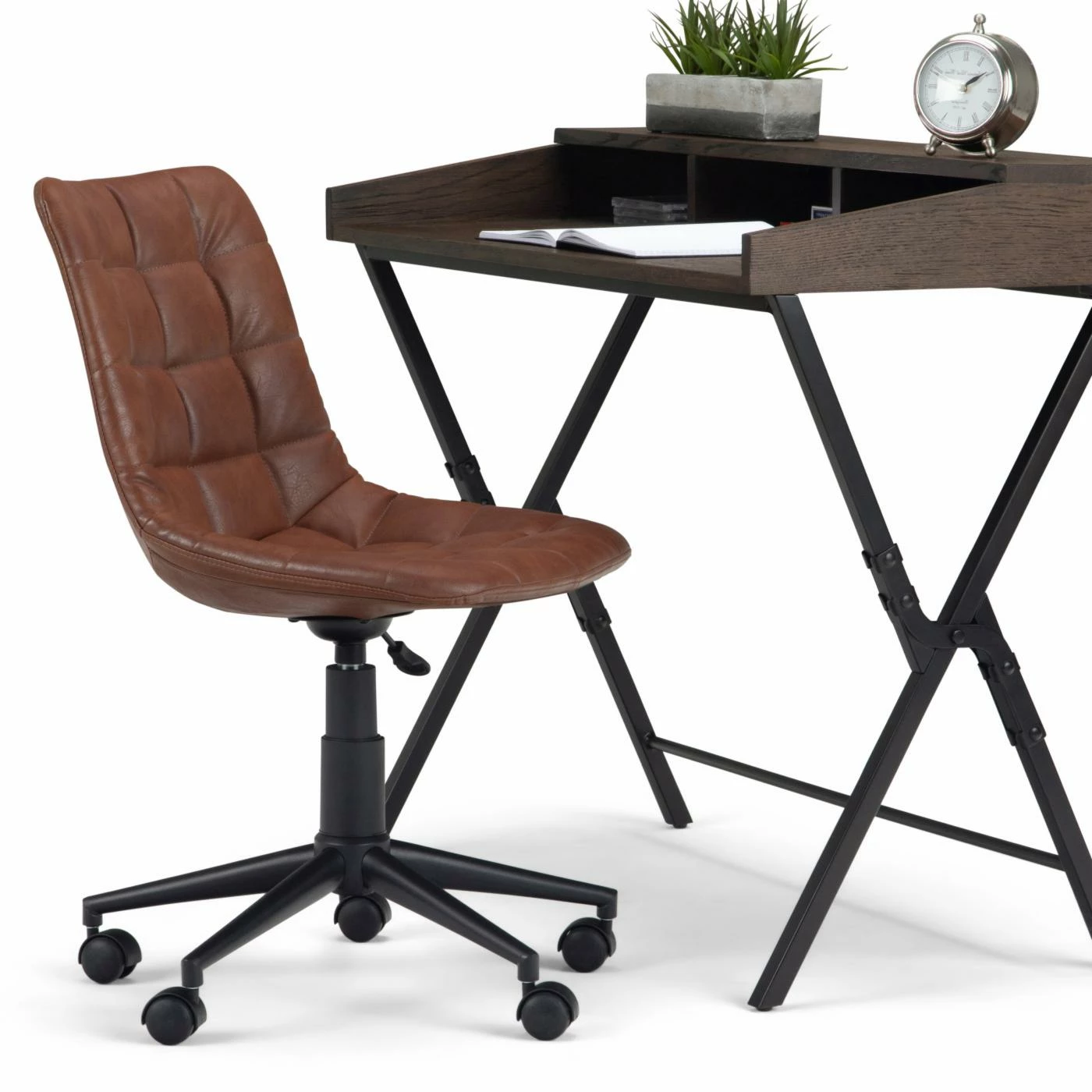 Classic style and functionality make the HN Home Beaman Modern Farmhouse Adjustable Swivel Office ChairΒ the next choice in your home office update. This office task chair features a faux leather upholstery with tufted details. The seat and back frame were made from engineered wood, and the base is made of metal with a black finish. This chair swivels, and offers an adjustable height, s you can position it exactly the way you need to get your work done.