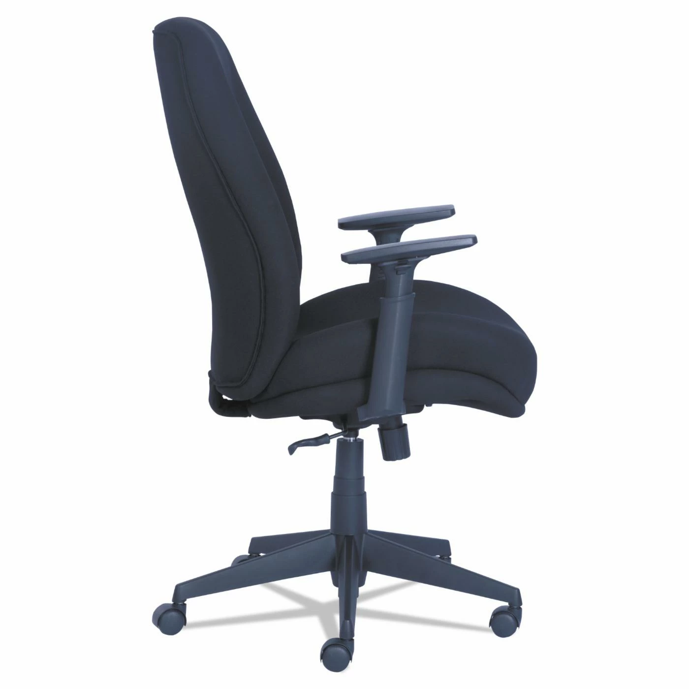 Contoured Proform molded foam seating technology with built-in lumbar support for superior comfort. Upholstered in premium black fabric. Height adjustable arms for custom comfort. Pneumatic lift with tilt tension adjustment and lockout feature. Five-star black nylon base with casters for easy mobility. American Chiropractic Association endorsed office seating. Recommended Application Area(s): Executive & Management; General Office & Task; Seat Color: Black; Back Color: Black; Color Family: Black.