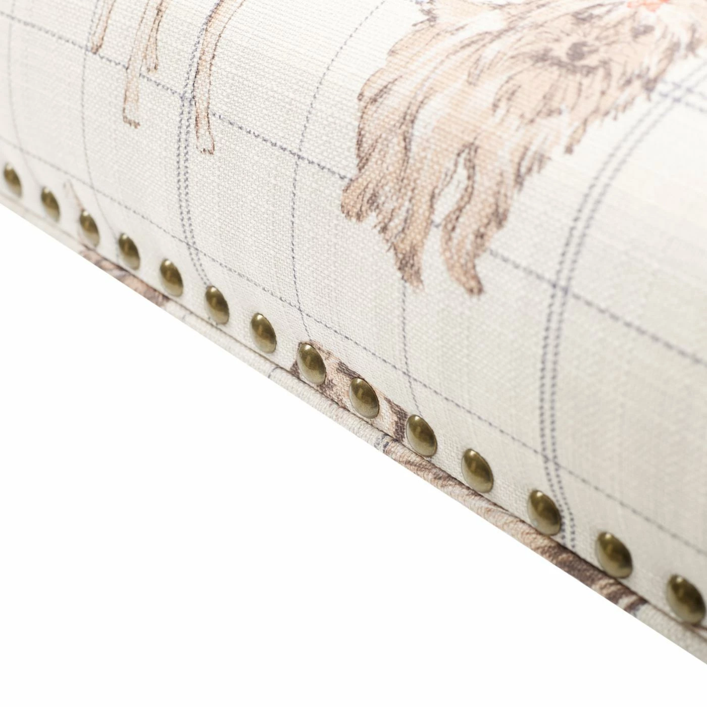 - Upholstered in overall dog pattern on easy clean 100% Polyester Fabric