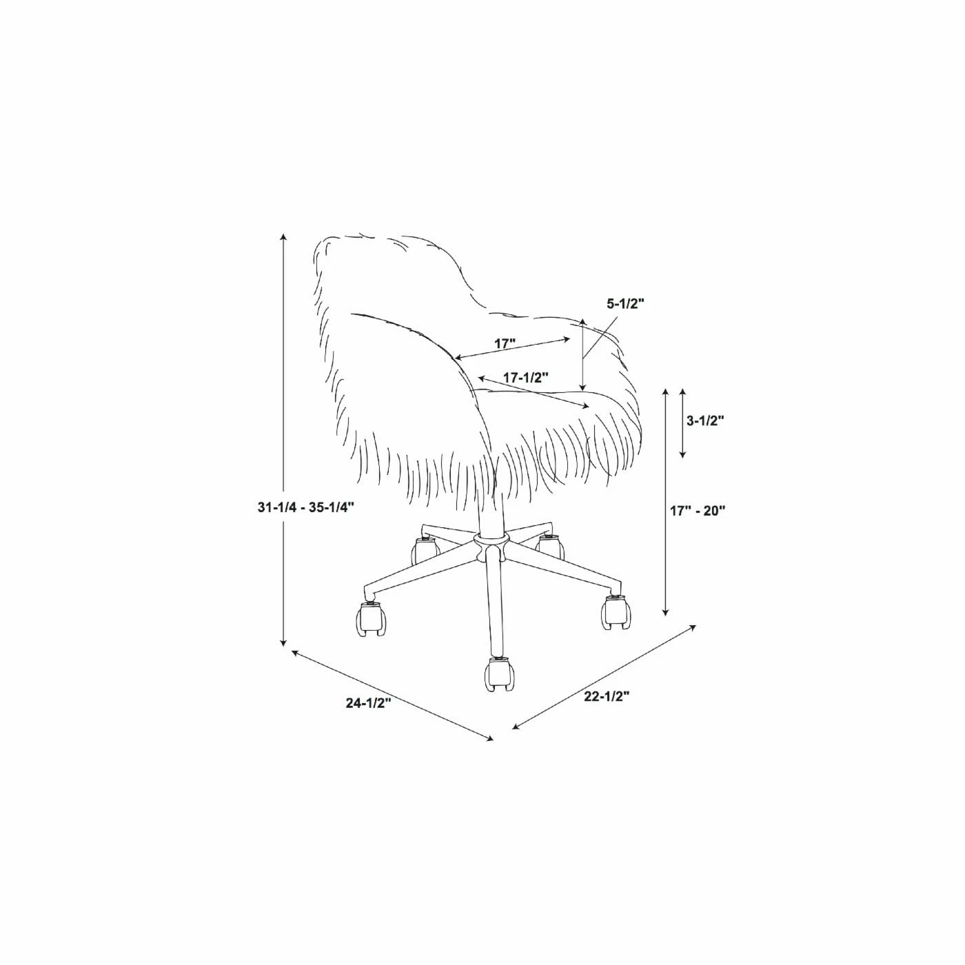 Perfectly posh, the Linon Fiona Upholstered Office Task Chair will lend a cozy touch to your dΓ©cor. This task chair is crafted for residential use and is constructed from poplar and metal. Its seat is upholstered with polyester fabric and foam. The chair features swivel functionality and is conveniently mobile on its five casters. Its adjustable height allows sitters to customize the seat to their preference.