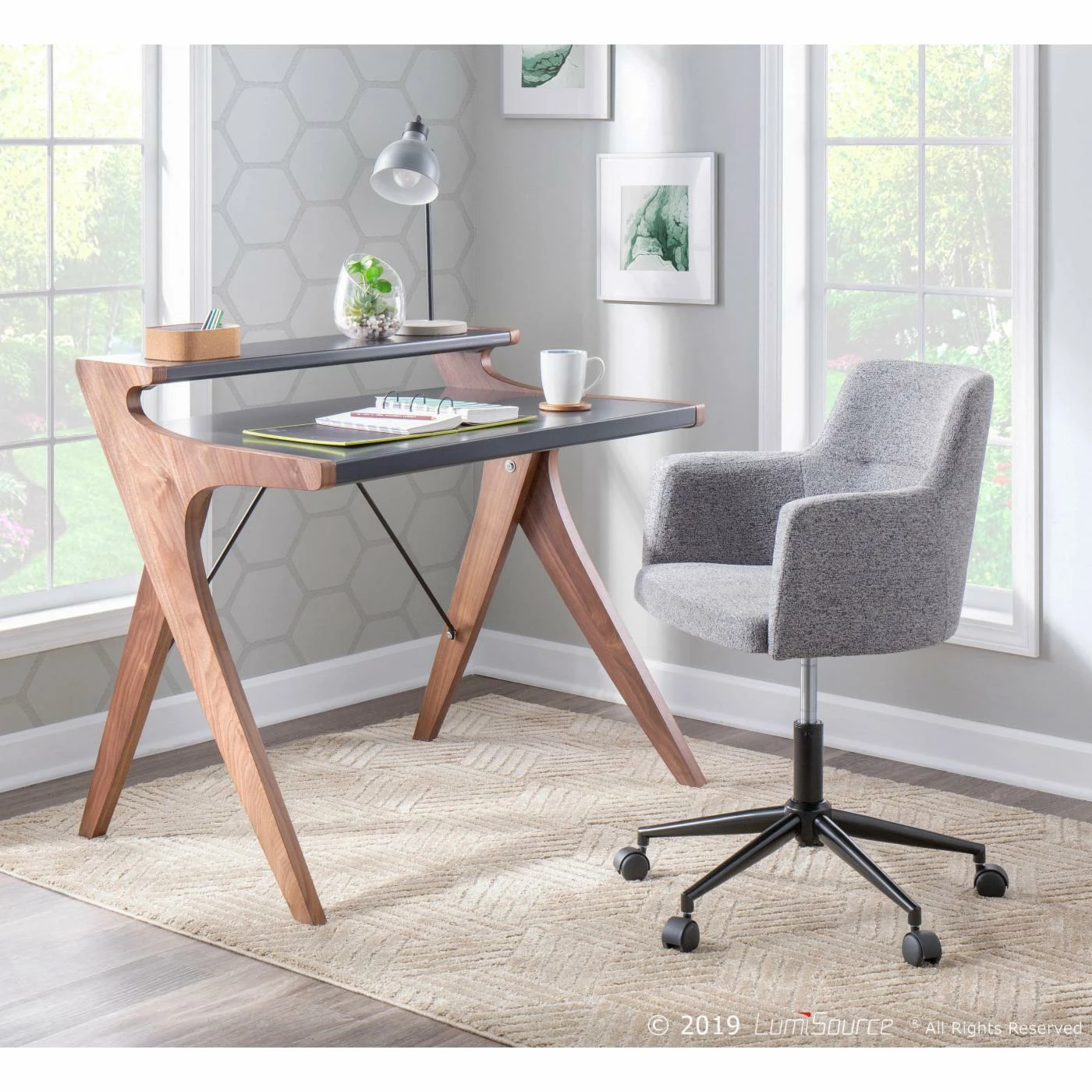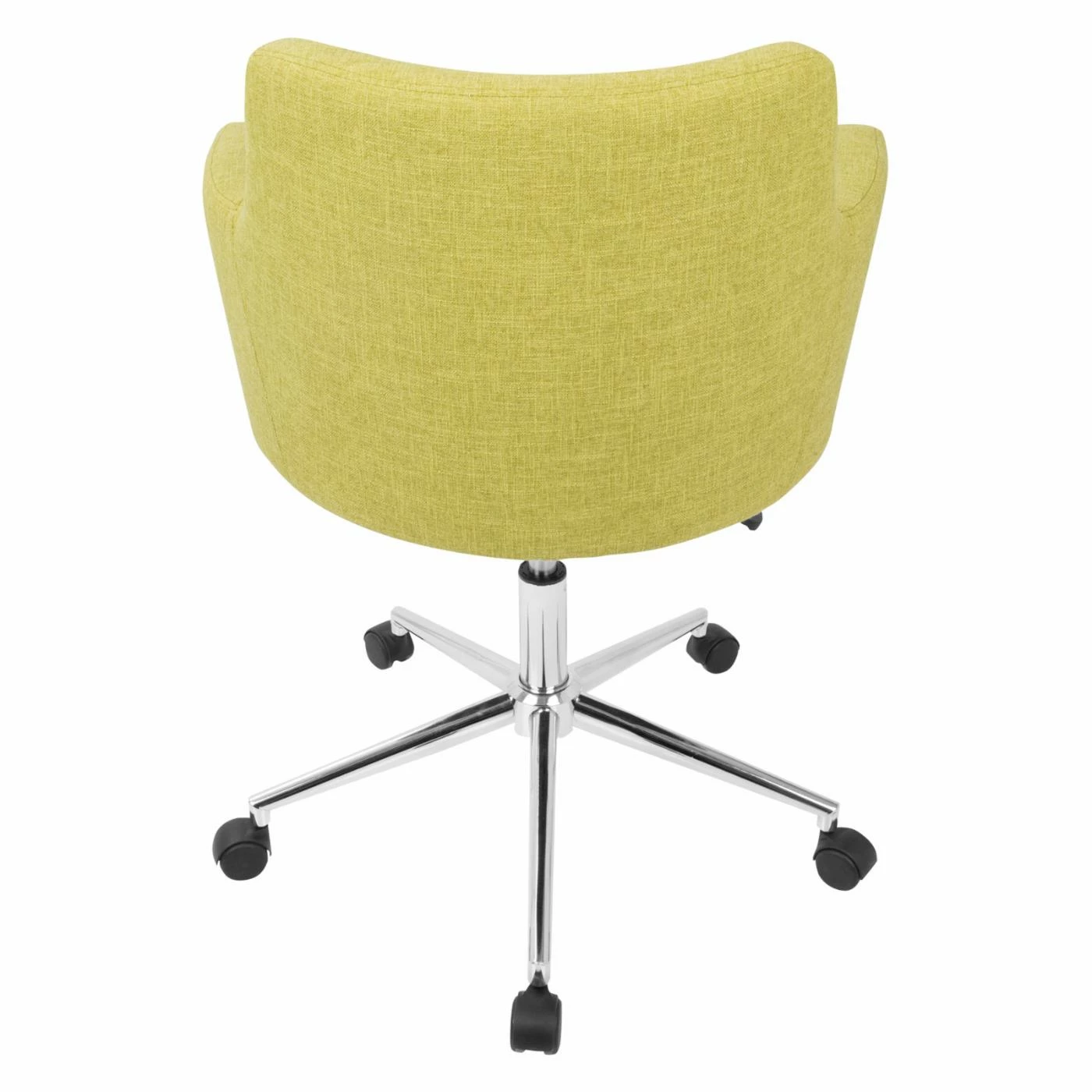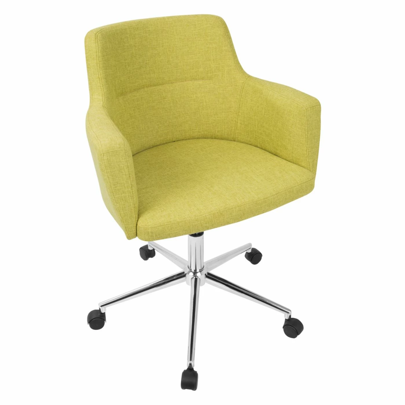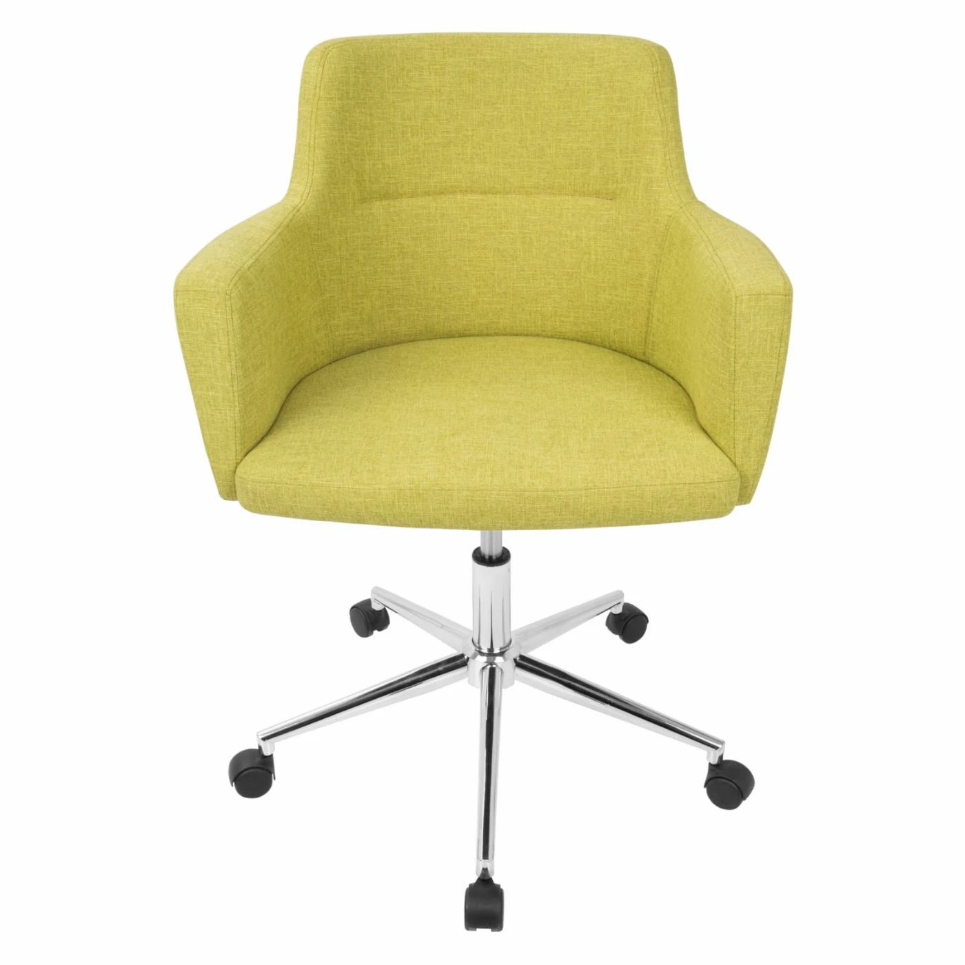 Invite a mid-century design into the office with the LumiSource Andrew Office Task Chair. This office chair boasts the curved back and integrated arms made famous by the barrel chair. It’s customized by your choice of available fabric upholstery color. Ergonomic features of this office chair include a smooth swiveling seat with adjustable height. To make it mobile, it sits on a five-star base with black plastic casters.