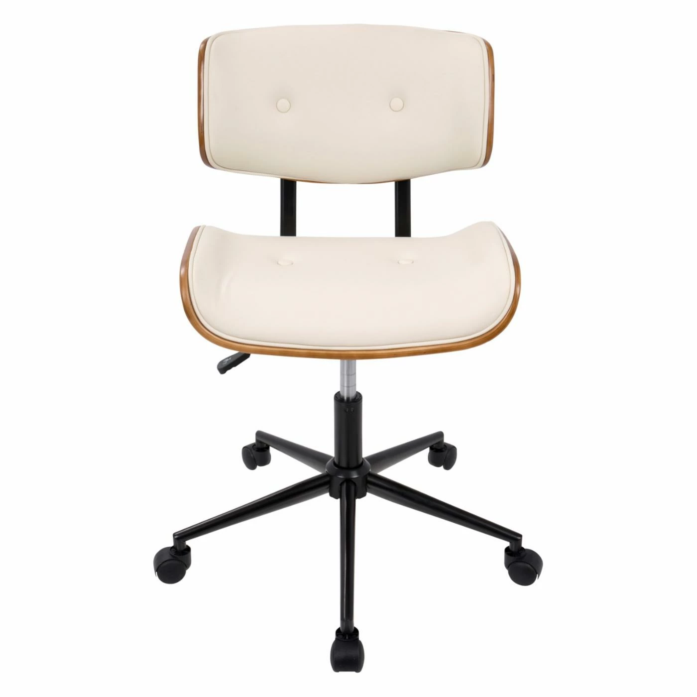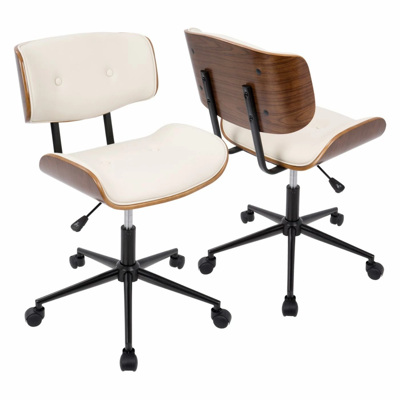The LumiSource Lombardi Adjustable Height Office Chair is based on a Mid-Century Modern design, but this one takes that classic inspiration and brings it into the modern office. The seat and backrest start with shells of curved plywood with a rich, walnut-toned finish. The thick padding of the seat and backrest are covered in the supple texture of faux-leather that’s offered in your choice of colors. The curved backrest is accented with button-tufting for a bit of visual texture. The steel base rests on swiveling casters for easy motion around your desk. You also get the perfect height with a lever-activated, pneumatic height-adjustment system.