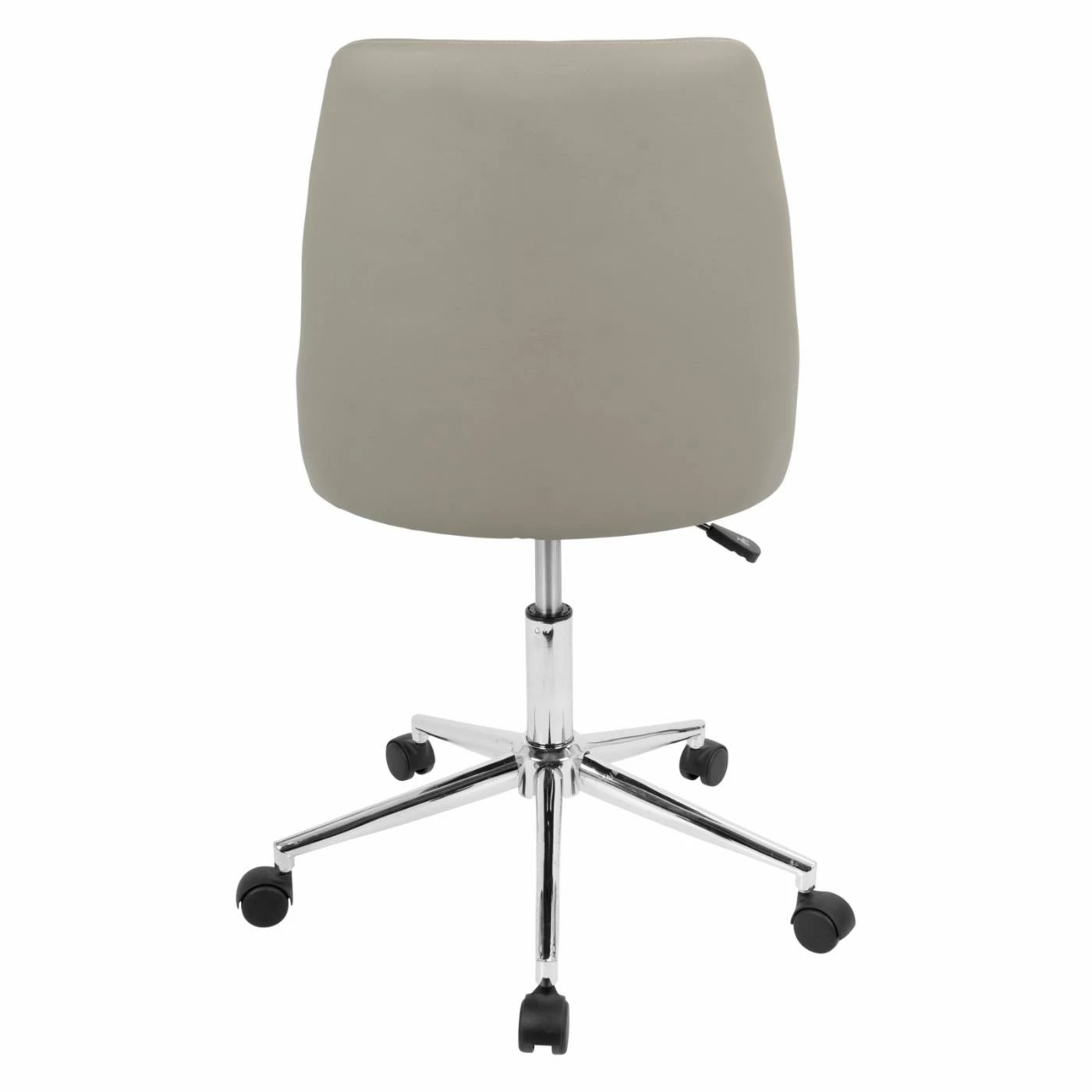A curved, button-tufted backrest gives the LumiSource Marche Adjustable Office Task Chair mid-century modern style. Faux leather upholstery in your choice of available color ensures this task chair will fit seamlessly alongside your desk. An armless design makes this ergonomic chair perfect for getting tasks completed. It boasts a smooth swiveling seat, adjustable seat height, and a five-star base with black plastic casters.