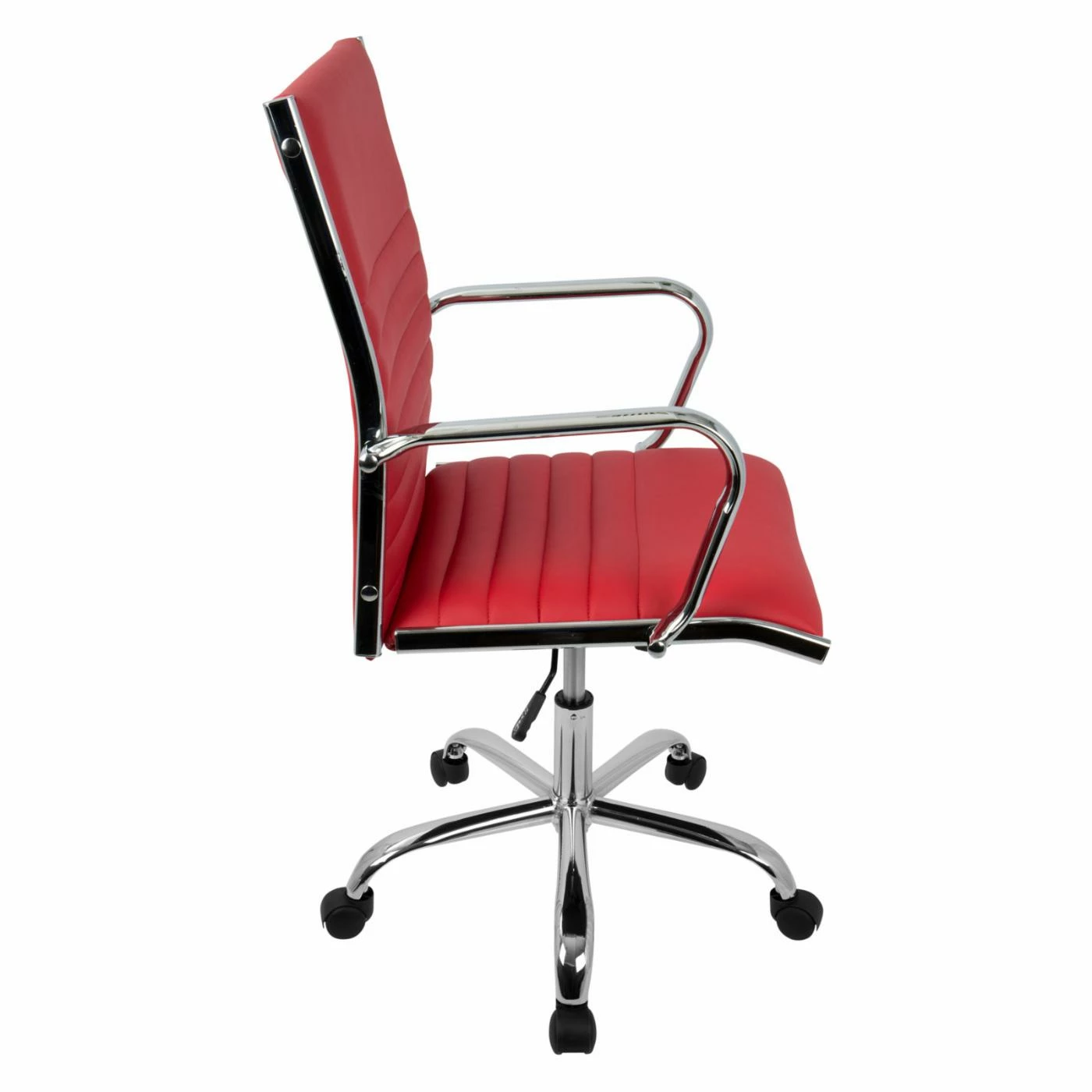 Keep your mind on your work, not on your uncomfortable chair, by upgrading your seating. The classic, simple design of the LumiSource Master Contemporary Office Chair is perfect for small home offices or large businesses alike. This chair has a polished chrome frame and arms, with a vinyl seat and back. An adjustable seat, rolling casters, and supportive back make this one chair you won’t mind sitting in for hours on end.