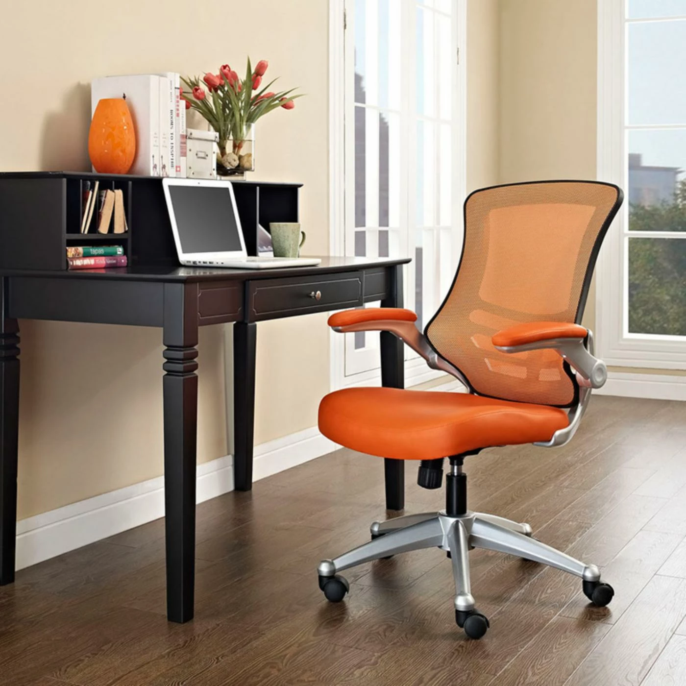 If you often find yourself at your computer for extended periods of time,Β then you will appreciate the breathability of the Modway Attainment Office Chair. The airy mesh back is curved to help with back and shoulder posture, while the lower frame of this dynamic chair provides exemplary lumbar support. With flip-up arms and a waterfall padded leatherette seat, those long hours at your desk will be a breeze. Choose from the available colors.