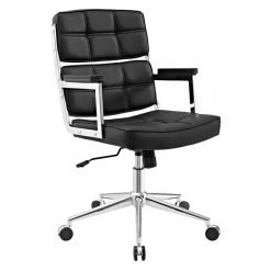 The Modway Edge All Mesh Office Chair ushers highly functional comfort and fashionable style into your office environment. This chair’s durable aluminum and plastic frame supports a proprietary suspended mesh weave that supersedes the need for foam padding. Combined with an ergonomically shaped mesh back, the result is a breathable, highly comfortable chair that keeps you cool all day long. Flip-up vinyl-pad armrests, a tension control knob, a locking tilt mechanism, and a pneumatic height adjustment system add to this chair’s usefulness. With the Edge office chair, you’ll have comfort and function right where you need them the most.