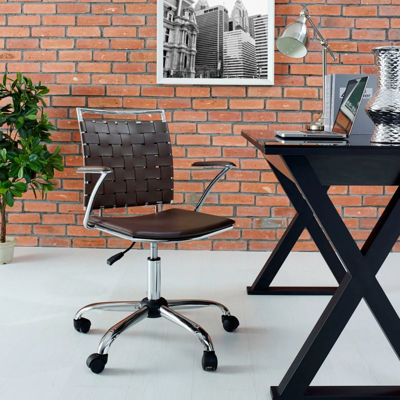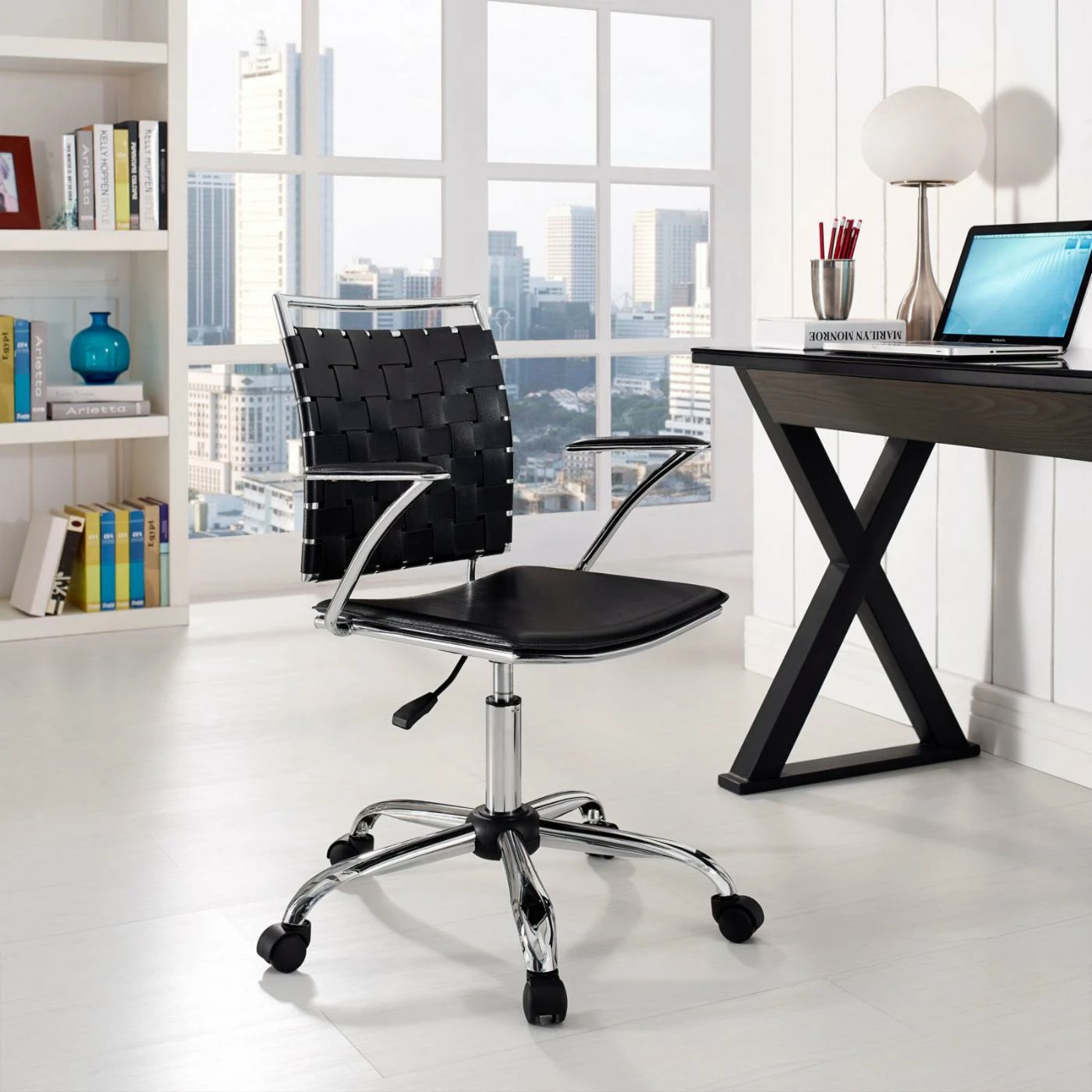 Meet your new muse, the Fuse. With the casual, relaxed feel of an old-school woven lawn chair, the Modway Fuse Office Chair amps up the style factor, infusing the atmosphere in your cube or corner office with a fresh, outside-the-box vibe. Durable PVC webbing forms the stylish and supportive modern backrest and the padded seat’s upholstery. With padded armrests and a range of adjustable features to tailor the comfort to your frame, this chair is available in several color choices for a personalized, stylish feel.