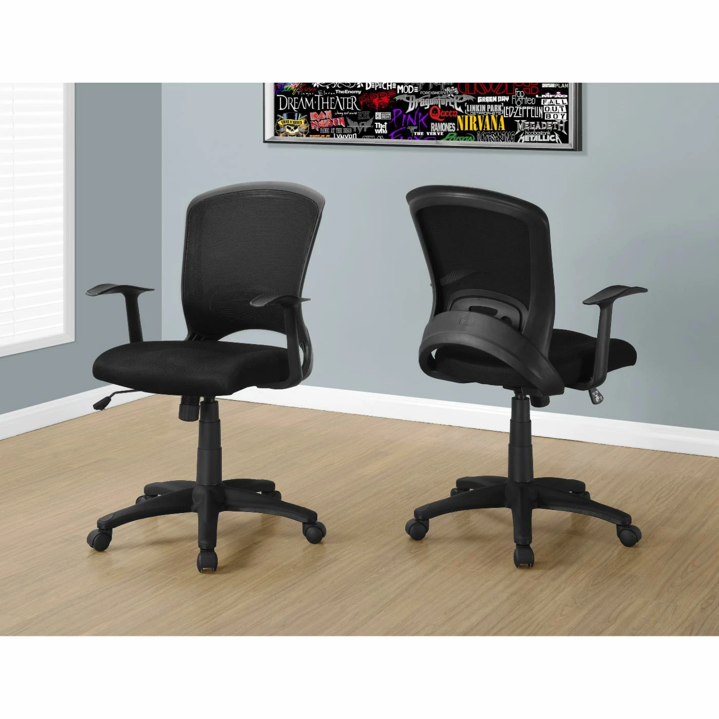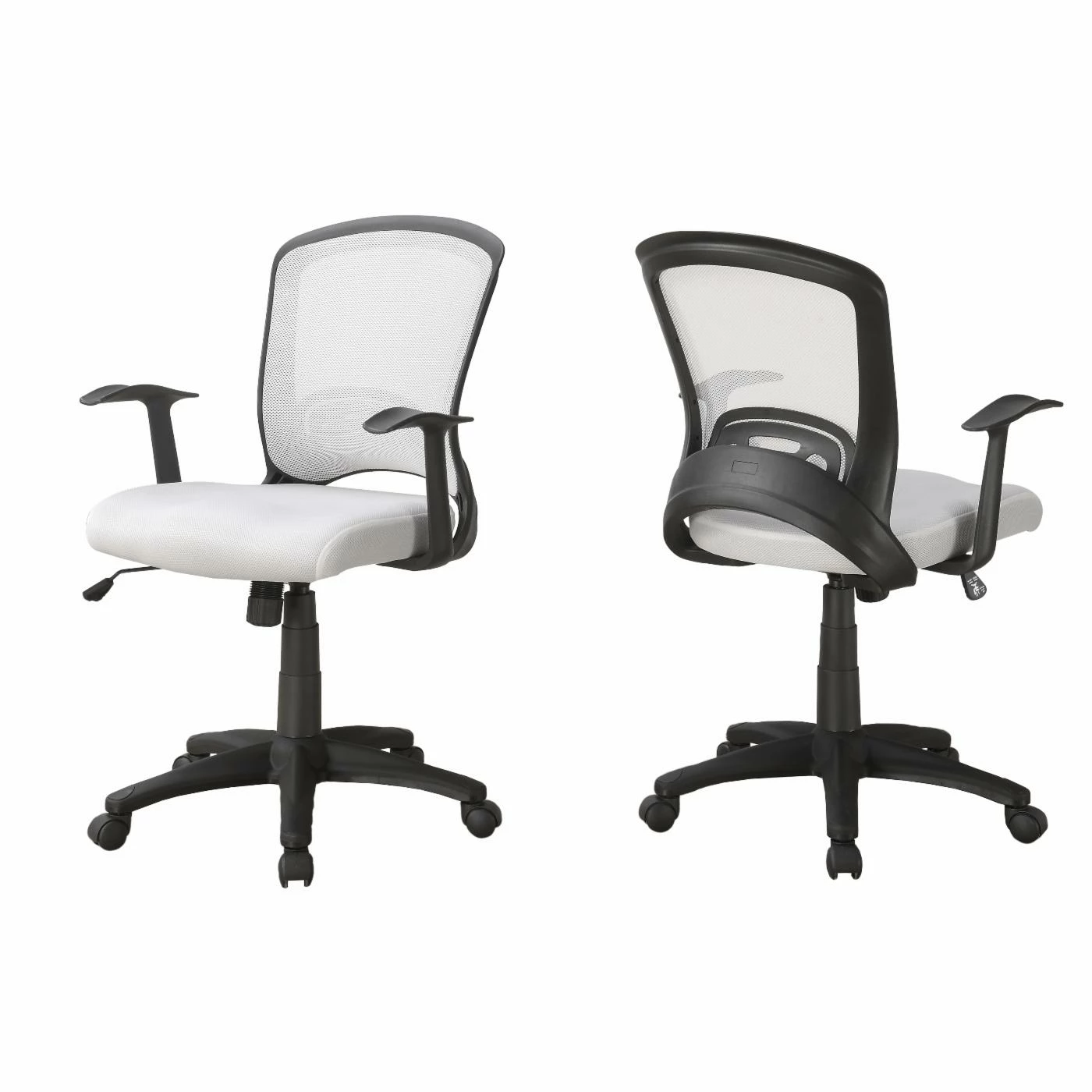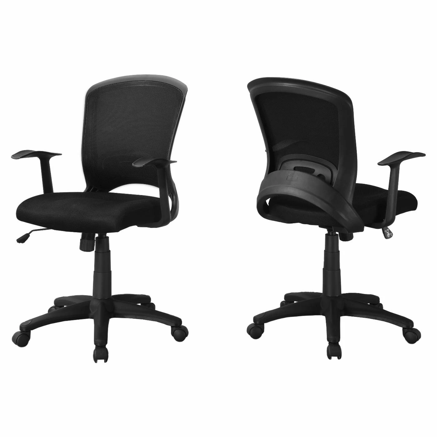 The Monarch Specialties Mid-Back Office Chair ensures you maintain correct posture thanks to a supportive curved back and thick, cushioned seat. A side lever lets you change the height of the seat and adjust the angle of the back for a customized fit. The breathable mesh fabric in your choice of color provides added durability, and five castors on the base of the chair allow you to easily maneuver throughout the room without damaging your floors.