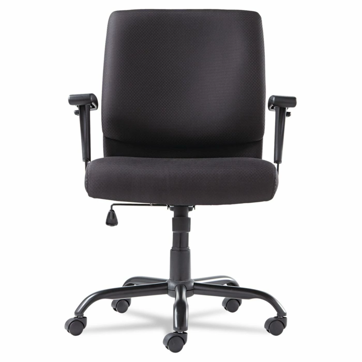 Built tough for extreme durability yet adds class to any environment. Classic styling specifically designed for the big and tall person; supports up to 450 lbs. Thickly cushioned seat and back provide complete support. Arms adjust for optimal placement or may be removed to suit your needs.