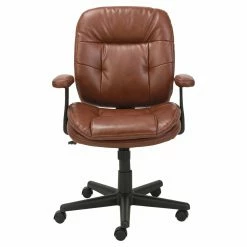 Whether you prefer to sit fully upright or to lean back and relax, the OIF Leather Swivel/Tilt Task Chair – Chestnut Brown is perfect for your needs. It’s tilt tension and tilt lock adjustments make it possible for you recline as much or as little as you desire. Chestnut brown genuine leather gives the chair a luxurious look and feel, and the back, seat, and arms are padded for added comfort. The rolling base frees you to move easily throughout your work space.