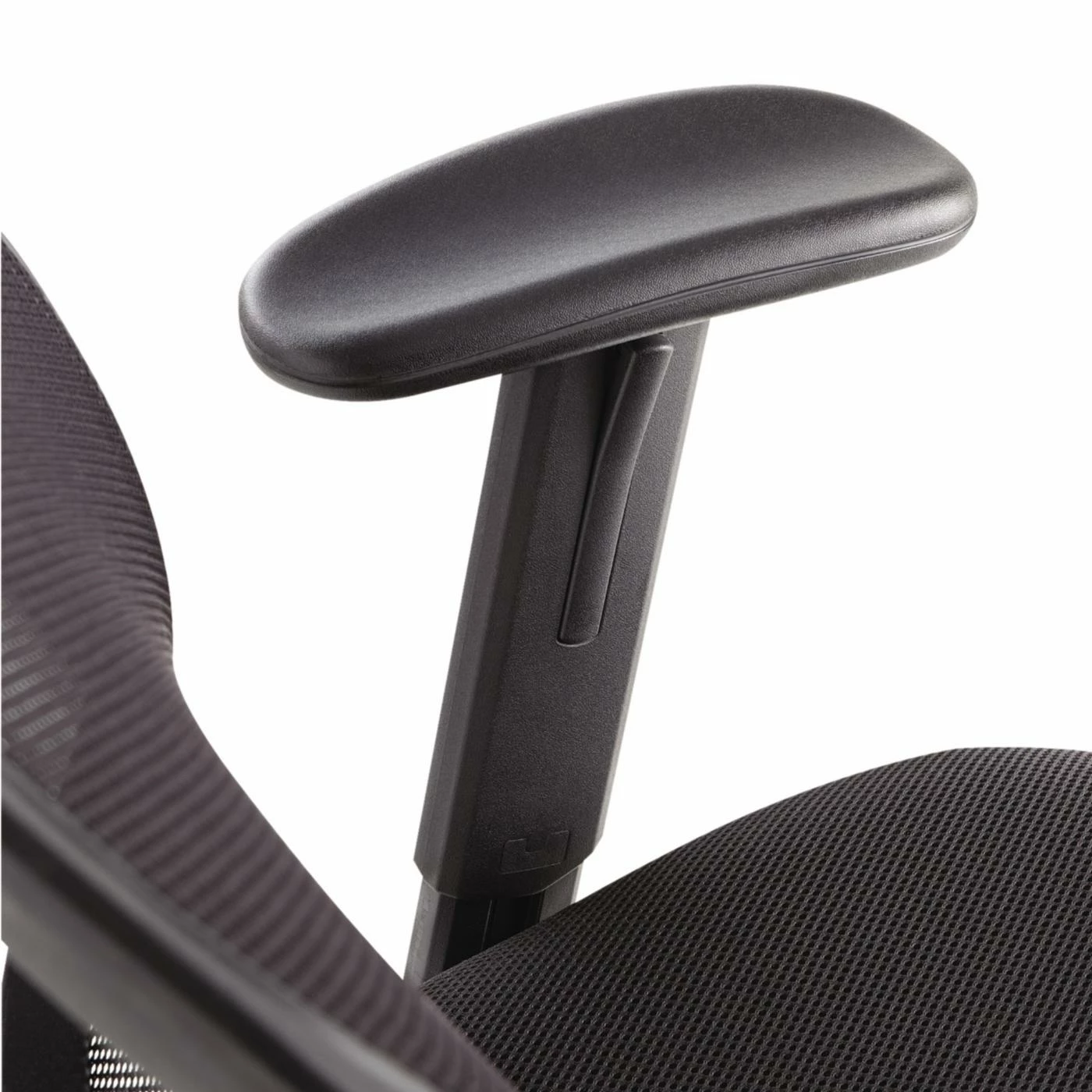 The economical choice for an everyday task chair. Cushioned mesh seat for all-day support. Ergonomic curved mesh back provides breathable comfort. Height adjustable padded arms for optimal arm placement. Recommended Application Area(s): Conference & Meeting; General Office & Task; Seat Color: Black; Back Color: Black; Color Family: Black.