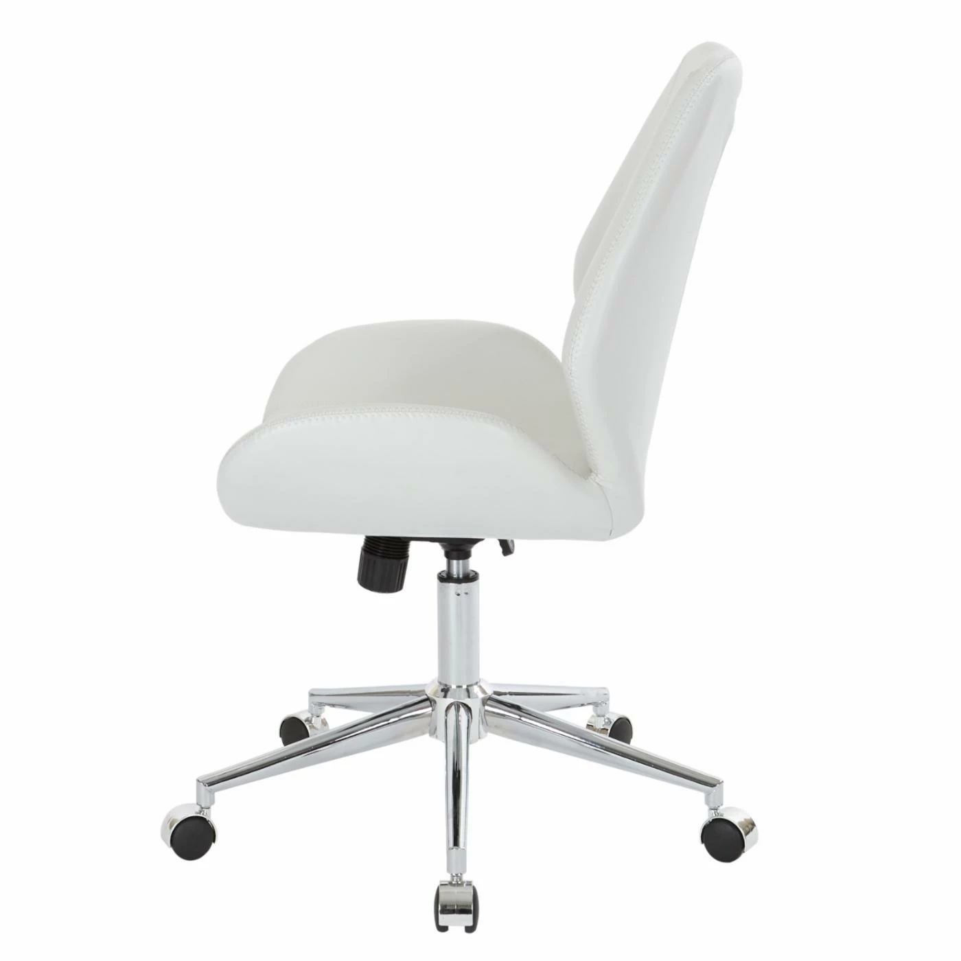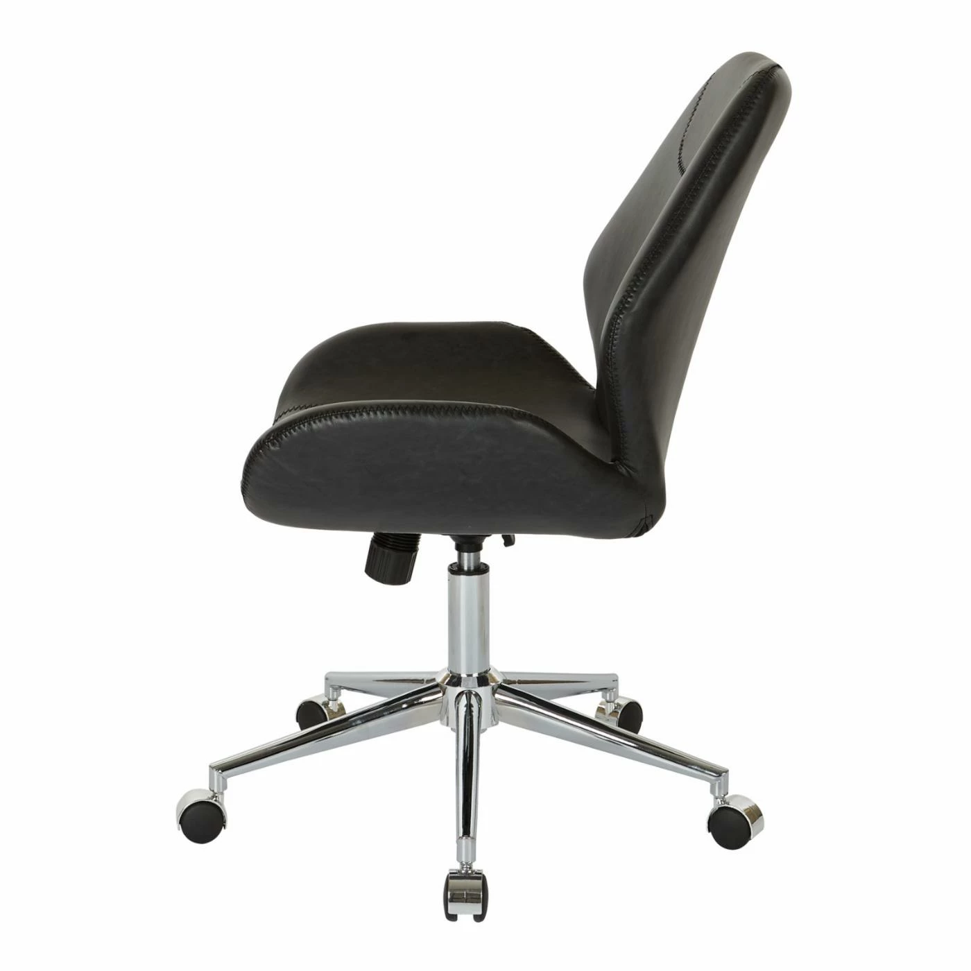 Modern design and classic comfort are excited announce their newest collaboration, the OSP Home Furnishings Chatsworth Office Chair. Inspired by vintage-modern styles, this unique chair offers a comfy shape formed with a combination of curved and smooth surfaces. The frame is made from engineered wood that is home to super-thick padding inside faux-leather upholstery. Flared sides, a tall back, and a simple height-adjustment system make it easy to love. You have a full selection of available finish and faux-leather colors to choose from, so be sure to pick the combo that best accents your space.