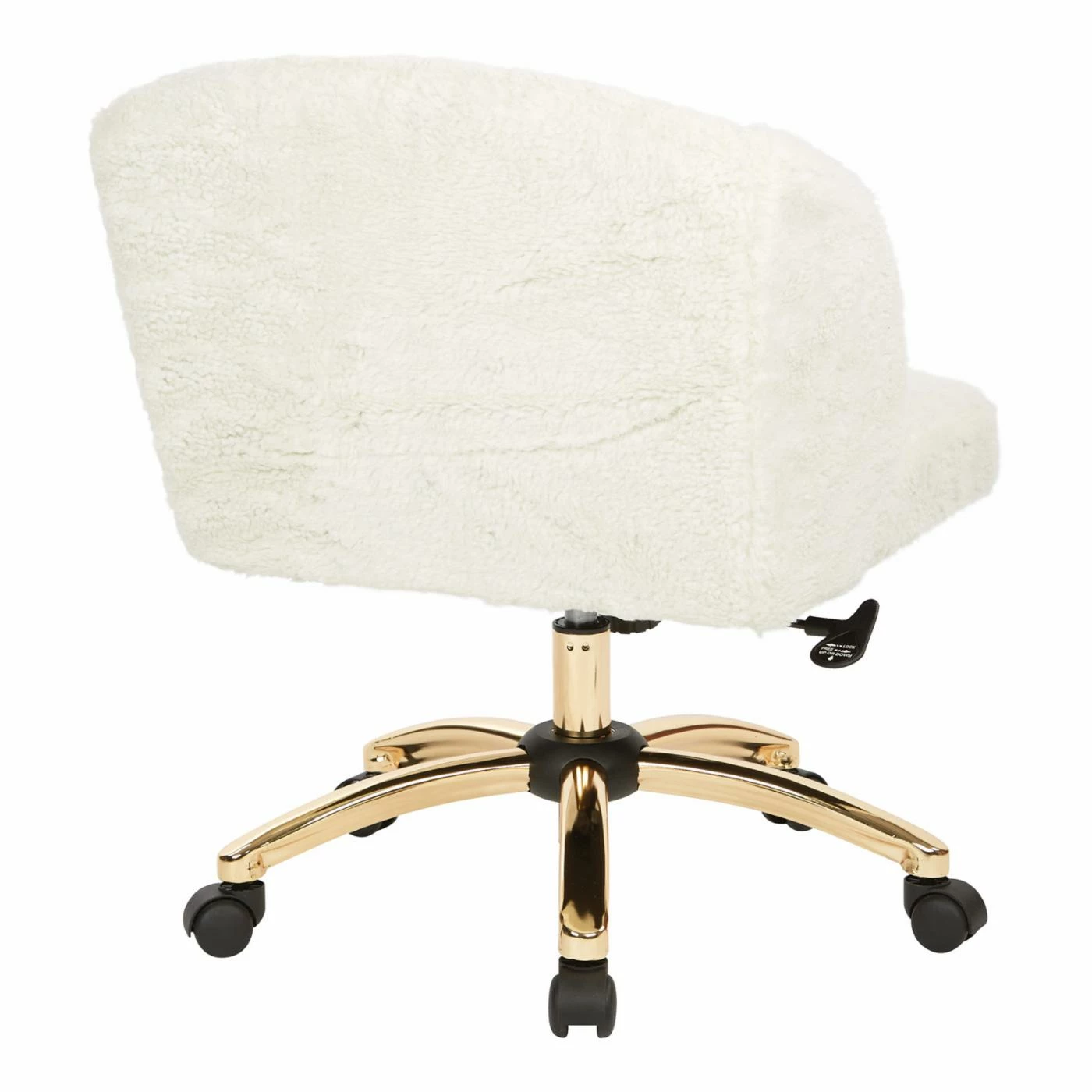 Glam up your home office with the OSP Home Furnishings Ellen Office Task Chair. Its high performance, easy care fabric has the look and feel of Sherpa material and provides chic contrast to the gold-finished base. One-touch pneumatic seat height adjustment, locking tilt control with adjustable tension, and carpet casters make this task chair perfect for you.